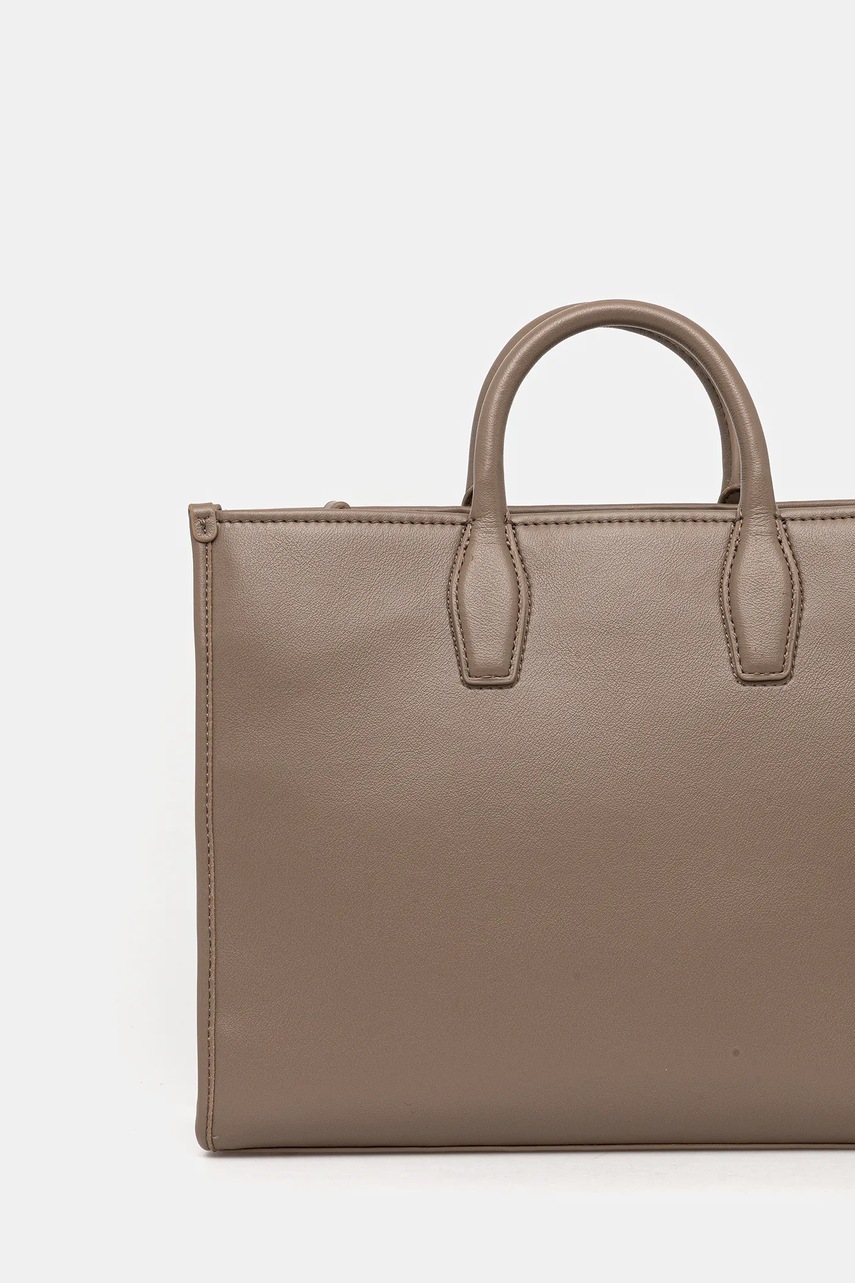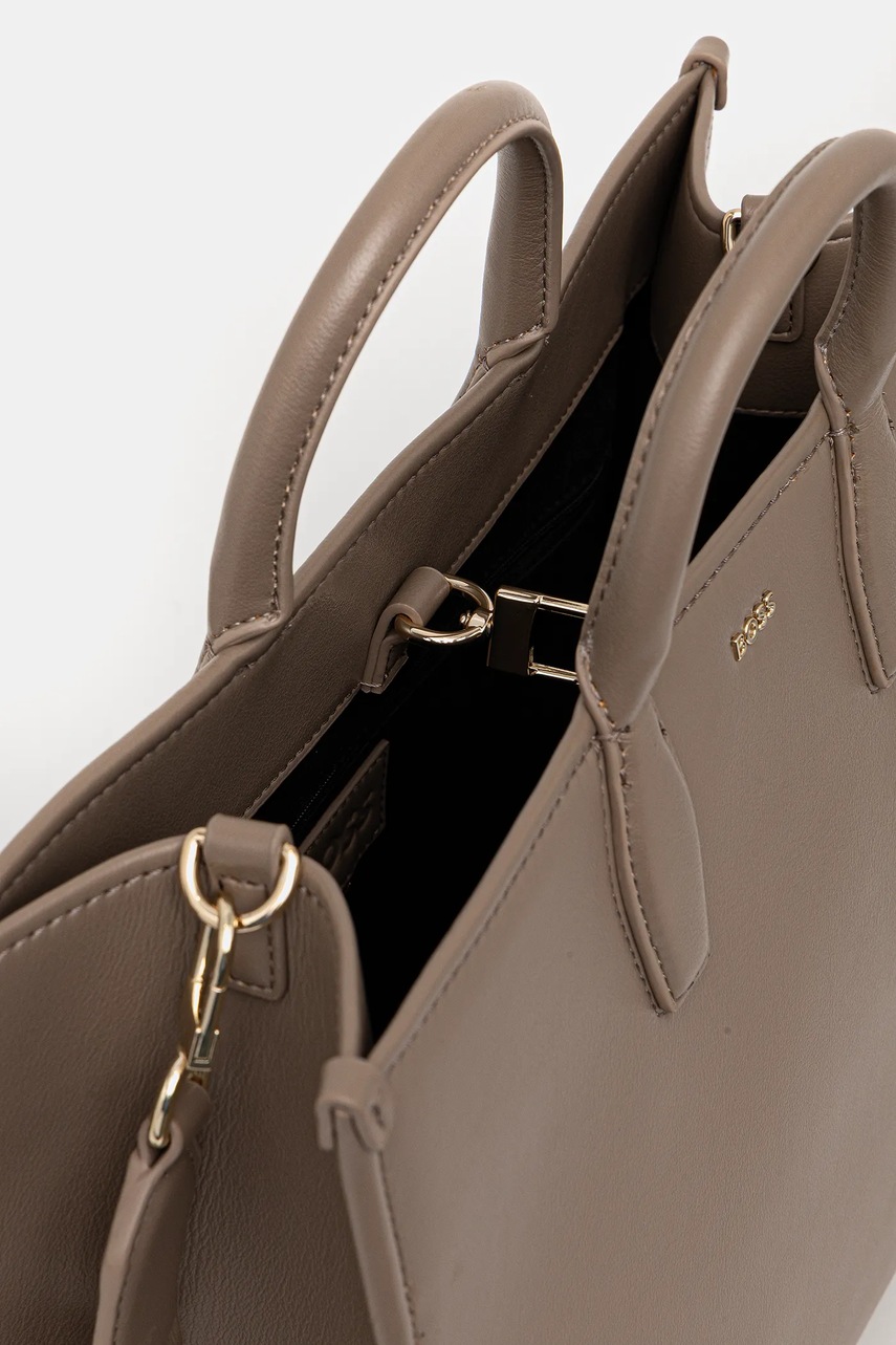 - Produkty z linii BETTER BOSS są wykonywane co najmniej w 60% z materiałów pozyskiwanych w bardziej ekologiczny sposób. - Komora zapinana na karabińczyk. - Posiada uchwyty i odpinany pasek z regulacją. - Mieści format A4. - Model z podszewką. - Kieszonka wewnętrzna zapinana na suwak. - Model wyposażony w metalowe nóżki, które zabezpieczają spód torebki. - Długość minimalna paska: 85 cm. - Długość maksymalna paska: 137 cm. - Długość uchwytów: 26 cm. - Głębokość: 14 cm. - Wysokość: 27 cm. - Szerokość u podstawy: 36 cm.