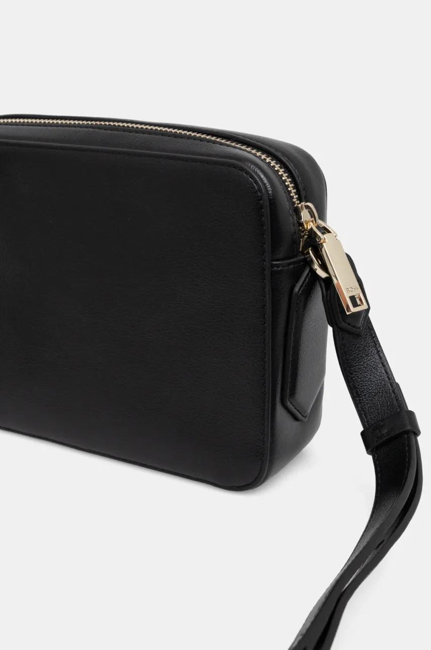 - Produkt zawiera materiały z włókien pochodzących z recyklingu. - Torebka do noszenia na ramieniu. - Nieodpinany pasek z regulacją. - Zapięcie na suwak. - Nie mieści formatu A4. - Model z podszewką. - Liczba wsuwanych kieszeni wewnętrznych: 1. - Liczba zapinanych na suwak kieszeni wewnętrznych: 1. - Długość minimalna paska: 108 cm. - Długość maksymalna paska: 122 cm. - Głębokość: 6 cm. - Wysokość: 15 cm. - Szerokość u podstawy: 19,5 cm.