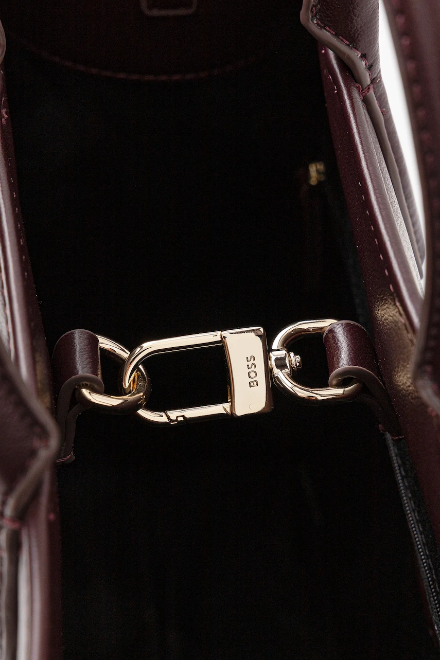 - Produkty z linii BETTER BOSS są wykonywane co najmniej w 60% z materiałów pozyskiwanych w bardziej ekologiczny sposób. - Komora zapinana na karabińczyk. - Posiada uchwyty i odpinany pasek z regulacją. - Mieści format A4. - Model z podszewką. - Kieszonka wewnętrzna zapinana na suwak. - Model wyposażony w metalowe nóżki, które zabezpieczają spód torebki. - Długość minimalna paska: 85 cm. - Długość maksymalna paska: 137 cm. - Długość uchwytów: 26 cm. - Głębokość: 14 cm. - Wysokość: 27 cm. - Szerokość u podstawy: 36 cm.