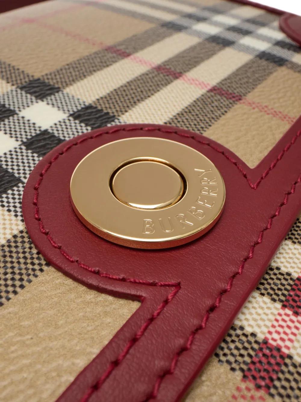 beige/multicolour check pattern detachable strap foldover flap magnetic closure exterior slip pocket logo-engraved closure