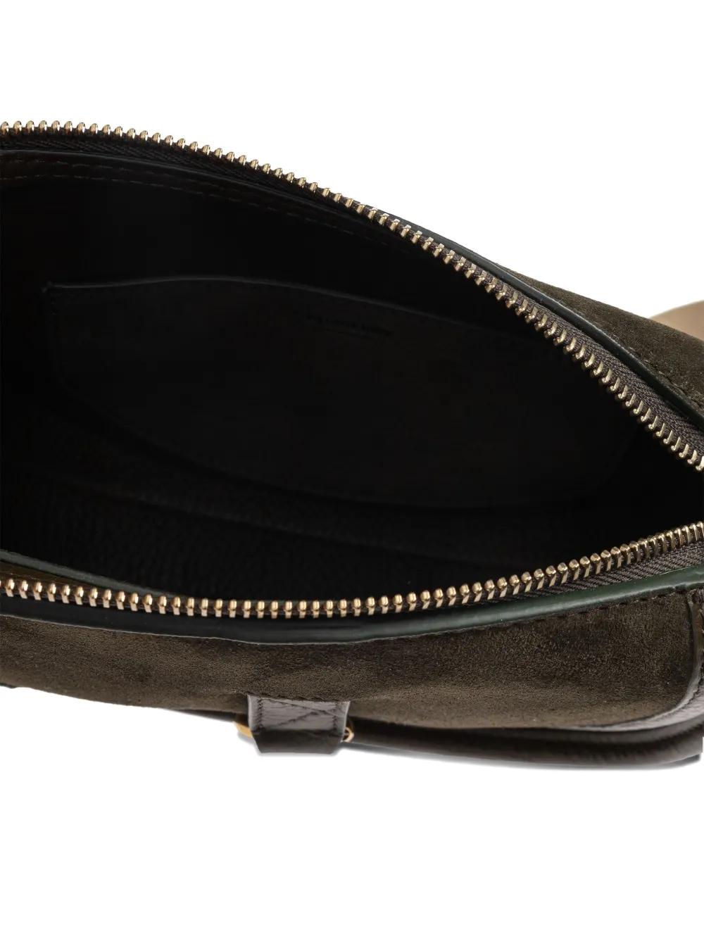 green detachable shoulder strap gold-tone hardware zip fastening internal slip pocket