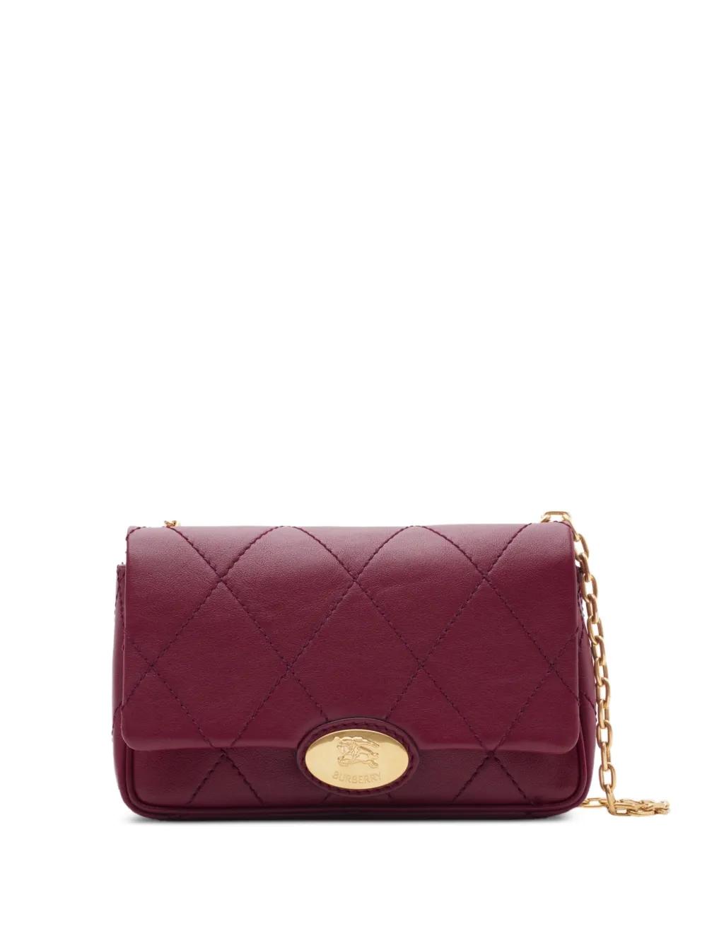 wine red foldover top with magnetic fastening chain-link shoulder strap signature Equestrian Knight motif diamond quilting