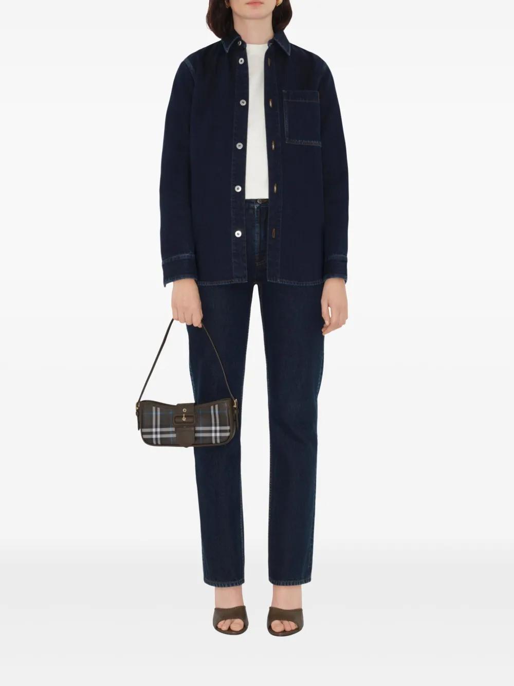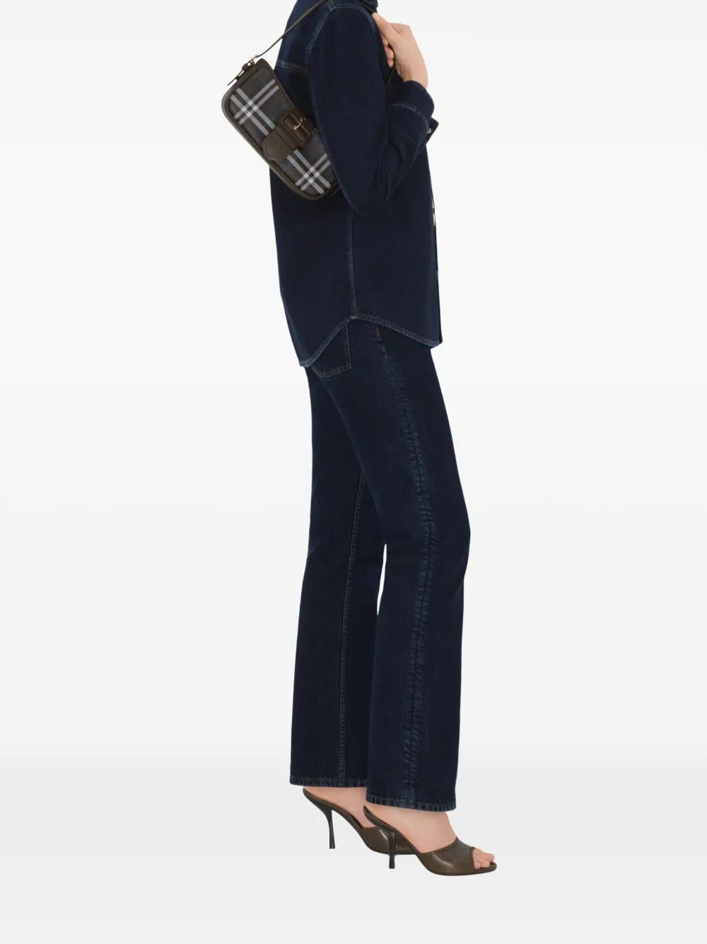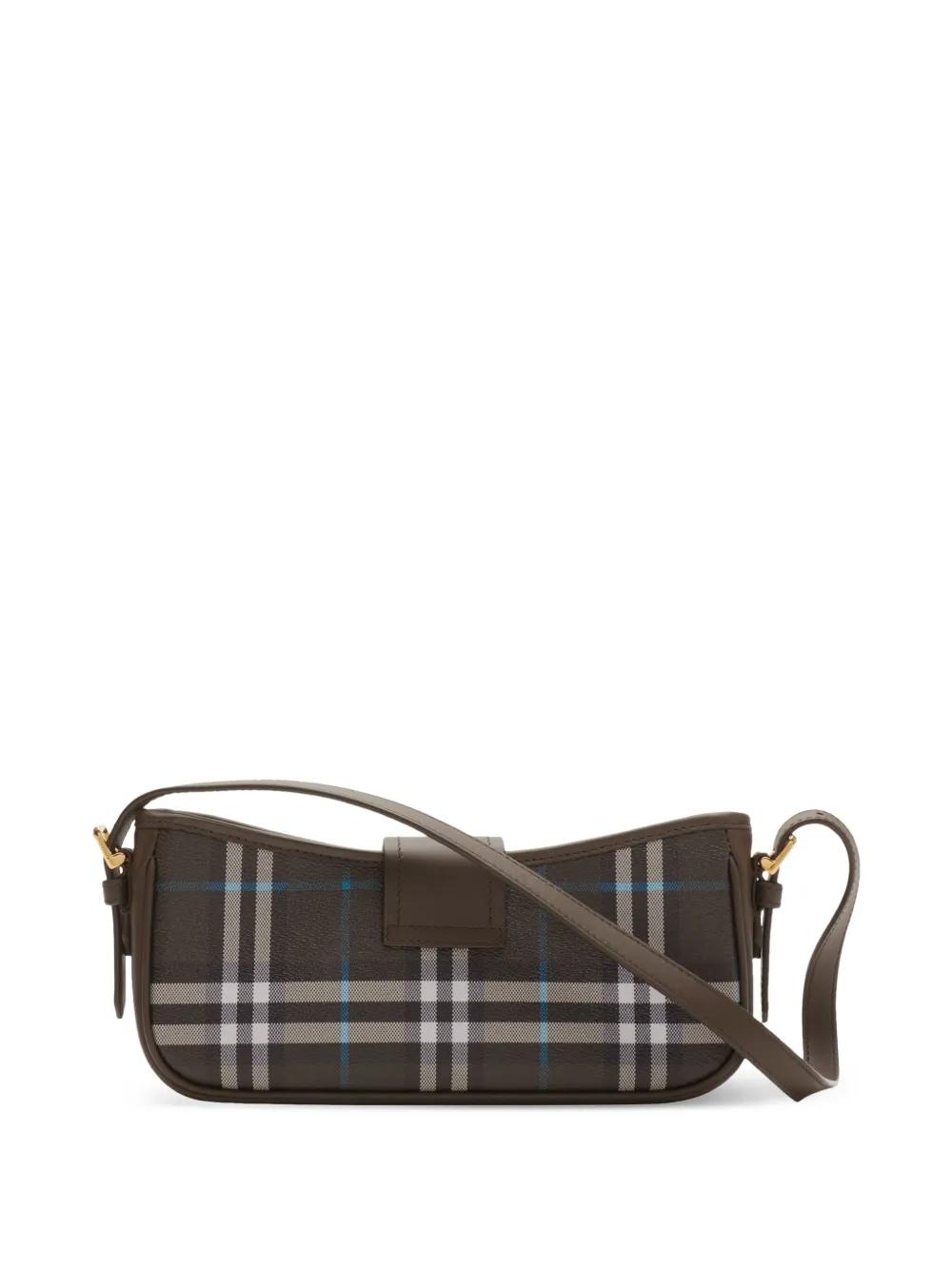 coffee brown buckle-strap fastening adjustable shoulder strap tartan check pattern leather trim