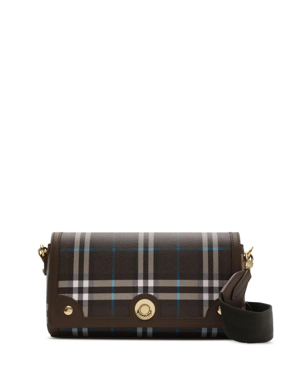 brown magnetic fastening foldover top main compartment detachable shoulder strap