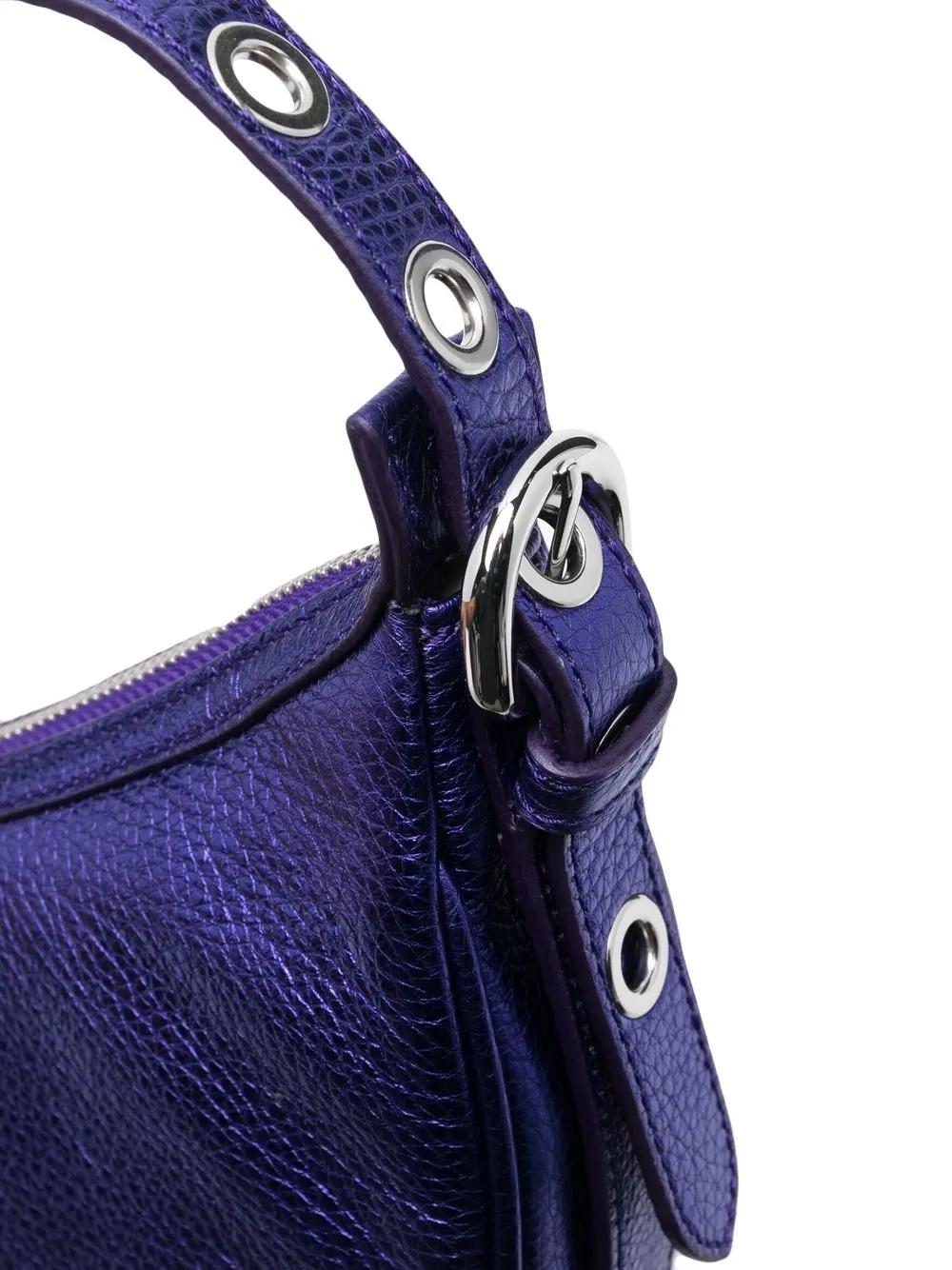 ultraviolet calf leather pebbled texture silver-tone hardware internal logo patch adjustable shoulder strap concealed top zip fastening top zip fastening main compartment