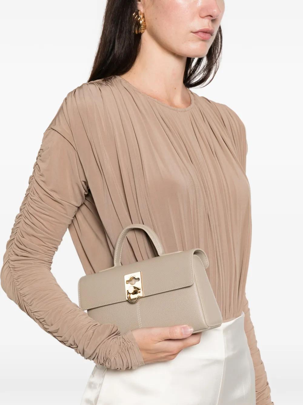 taupe top handle detachable shoulder strap gold-tone hardware back zip fastening front clasp fastening This piece comes complete with a protective dust bag.