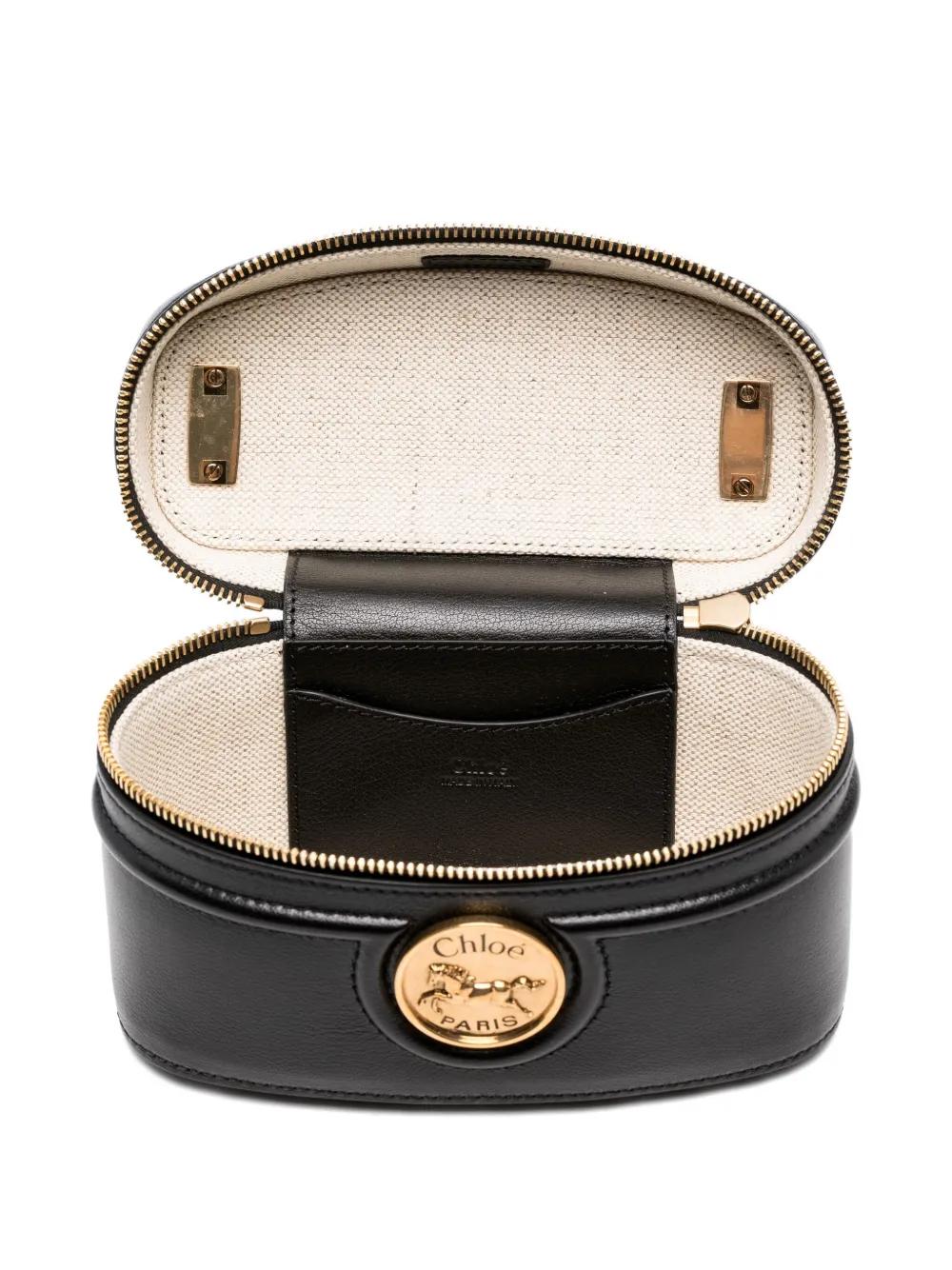 black gold-tone hardware zip fastening adjustable shoulder strap logo plaque internal card slot