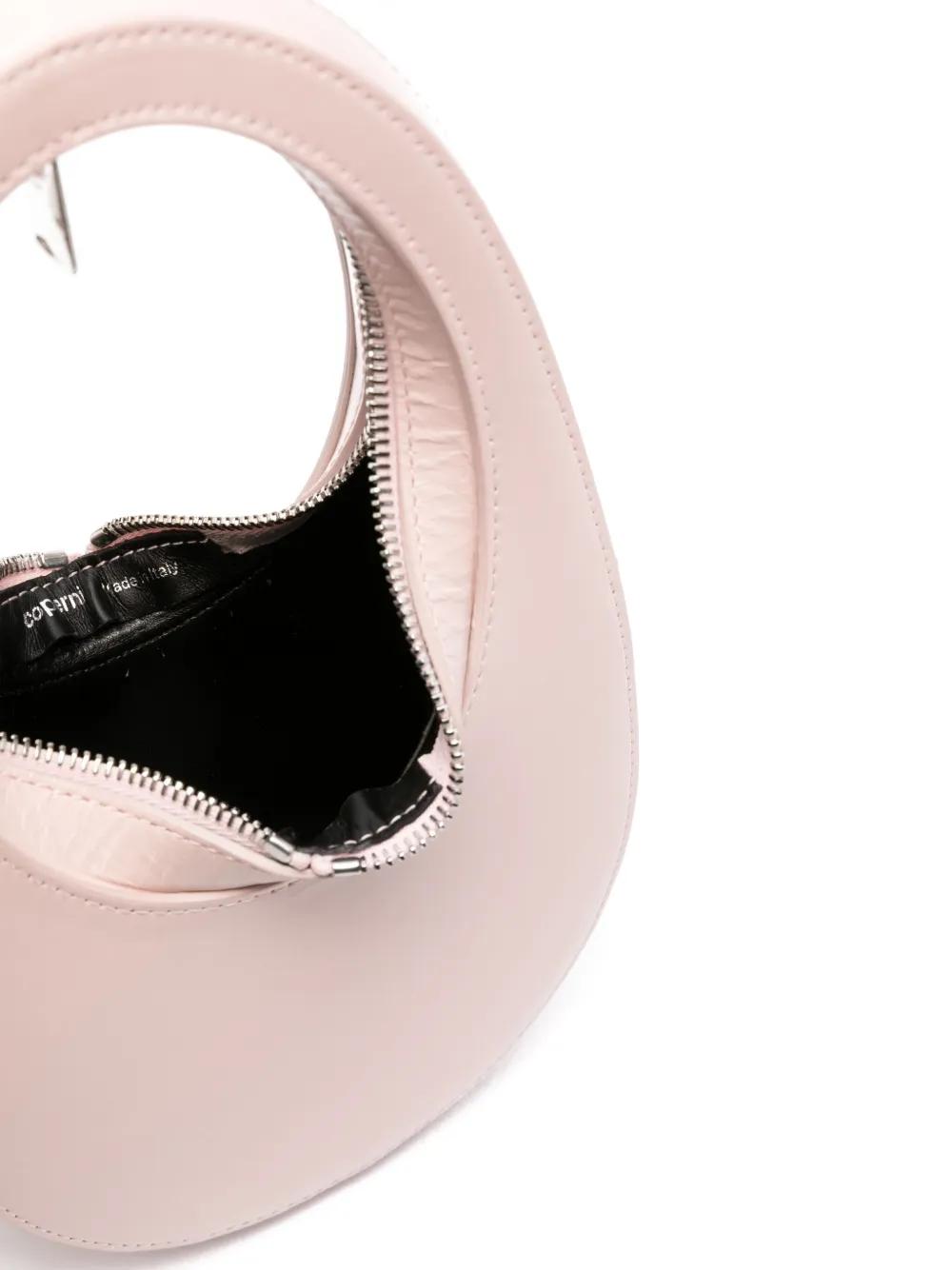 light pink calf leather glossy finish two-way zip fastening cut-out top handle adjustable detachable shoulder strap logo stamp to the front main compartment leather lining