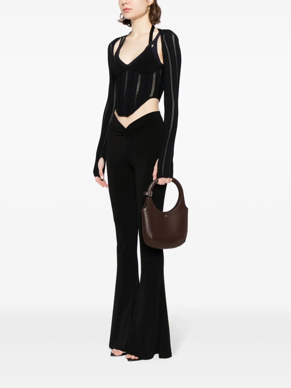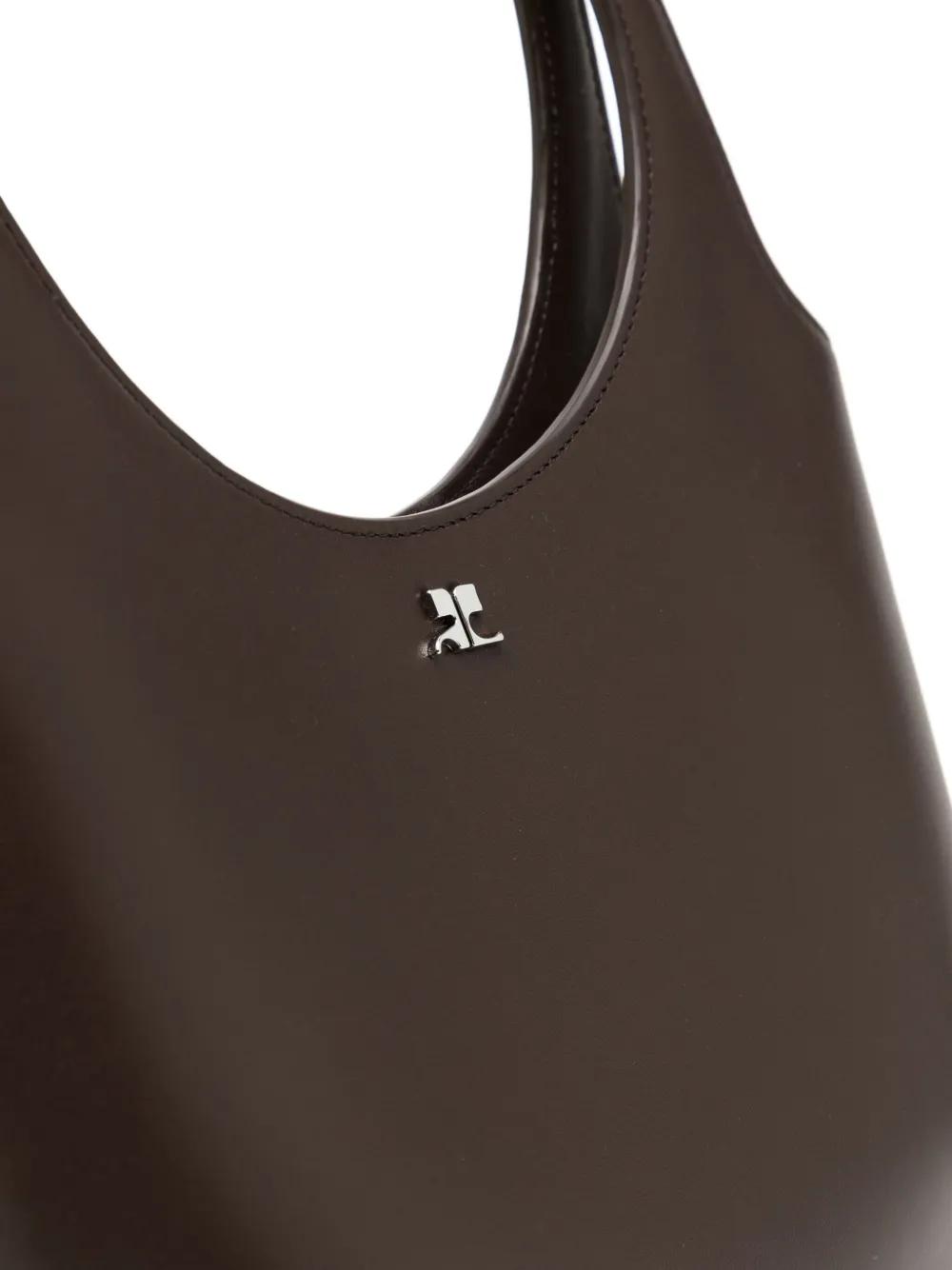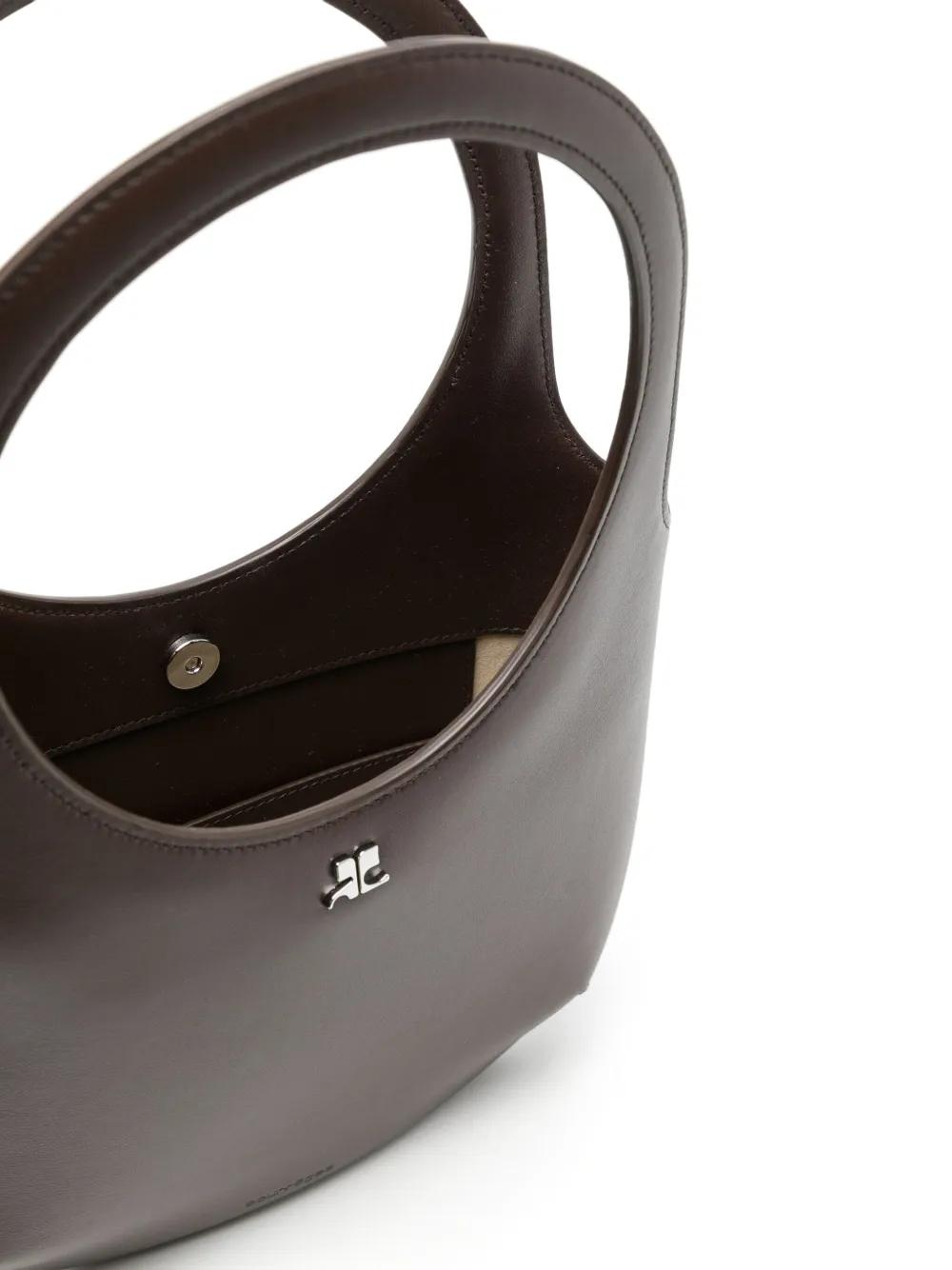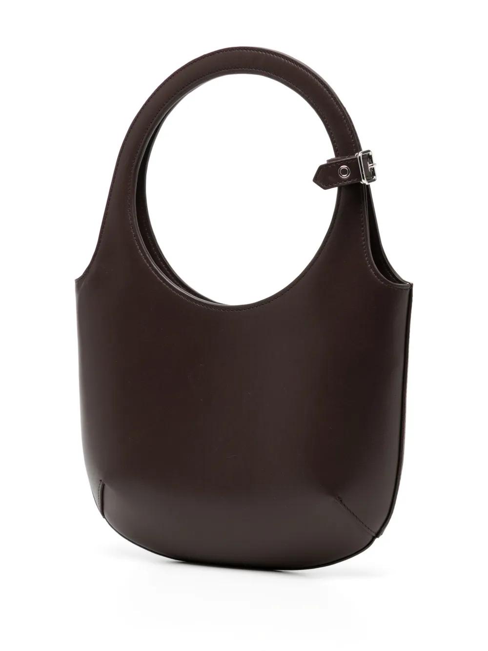 chocolate brown leather smooth grain silver-tone logo plaque decorative buckle detail silver-tone hardware concealed magnetic fastening adjustable detachable shoulder strap circular top handles main compartment
