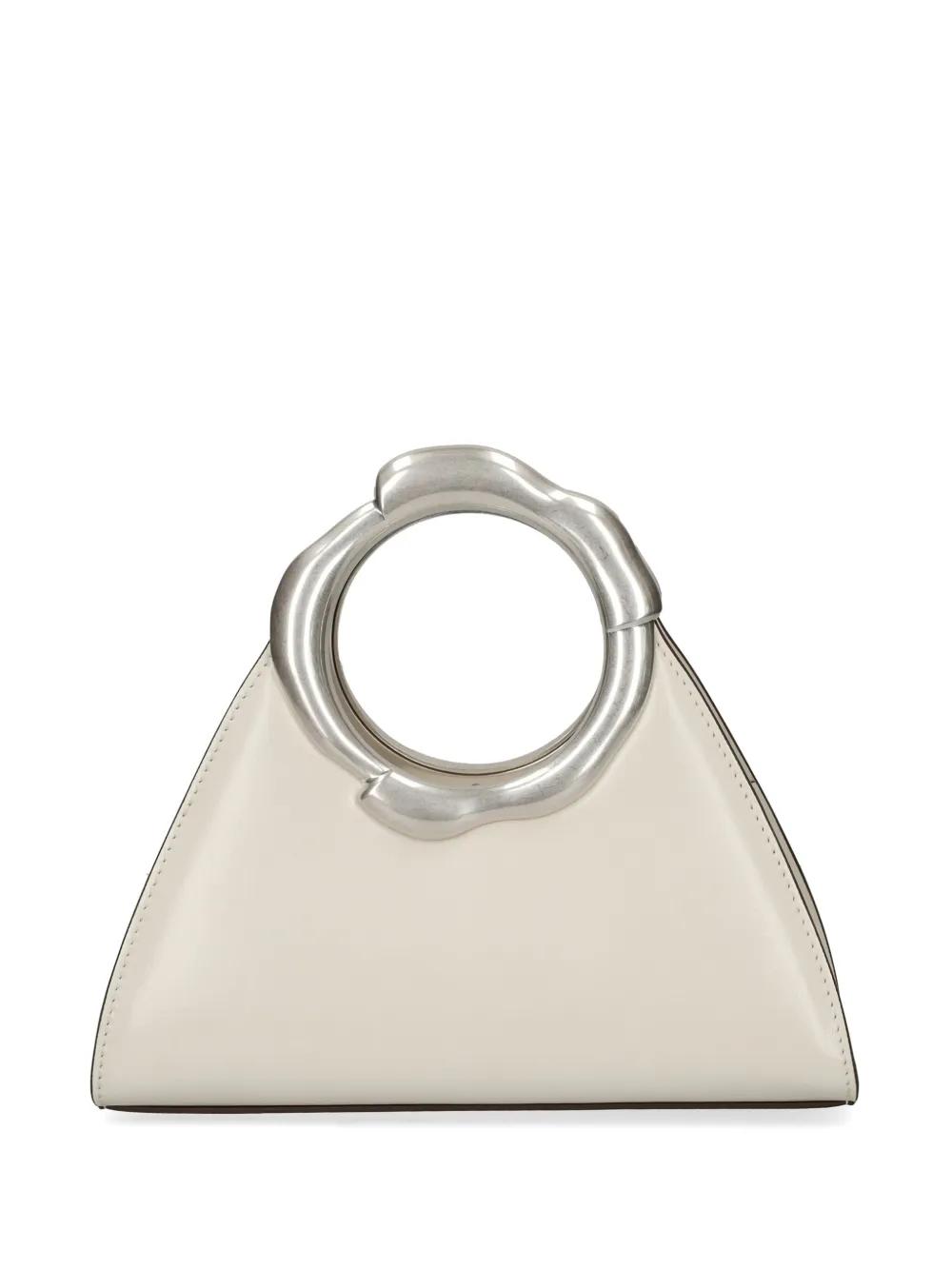 white concealed magnetic fastening circular top handles partitioned compartment This piece comes complete with a protective dust bag.