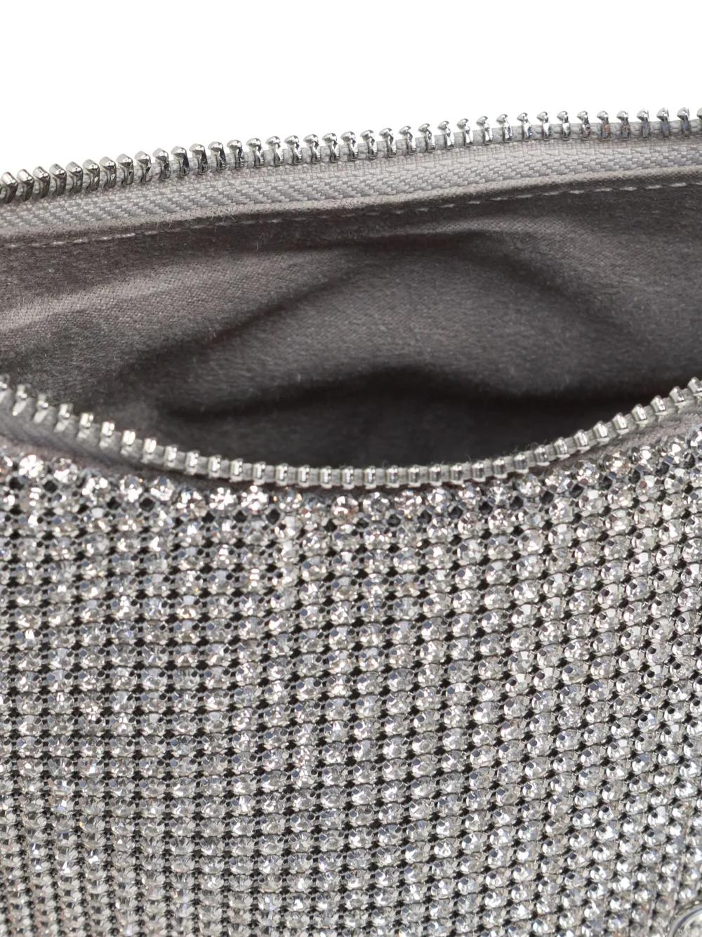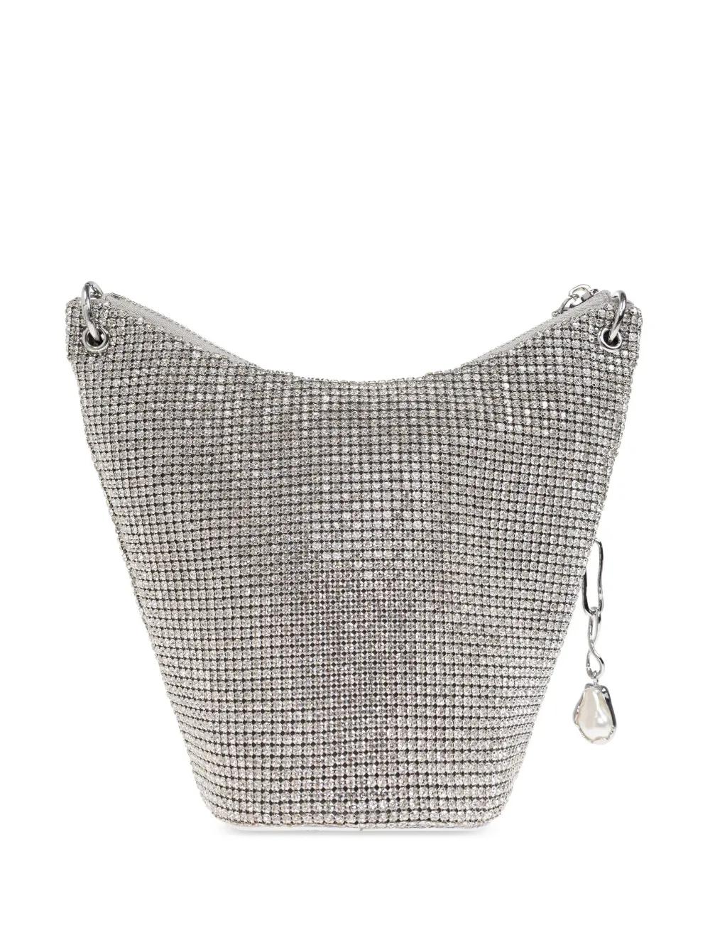silver-tone top zip fastening single chain-link top handle rhinestone embellishment logo plaque