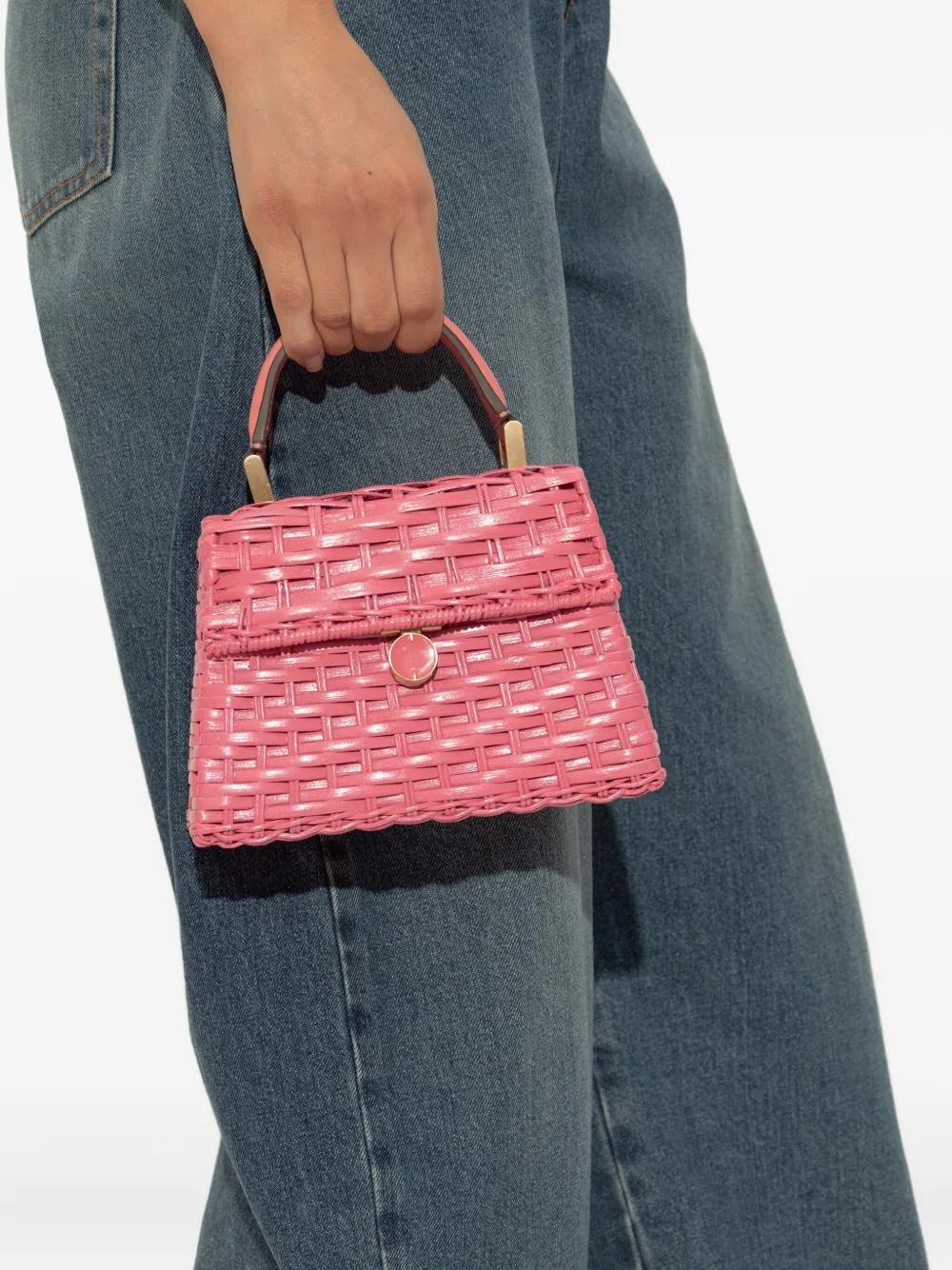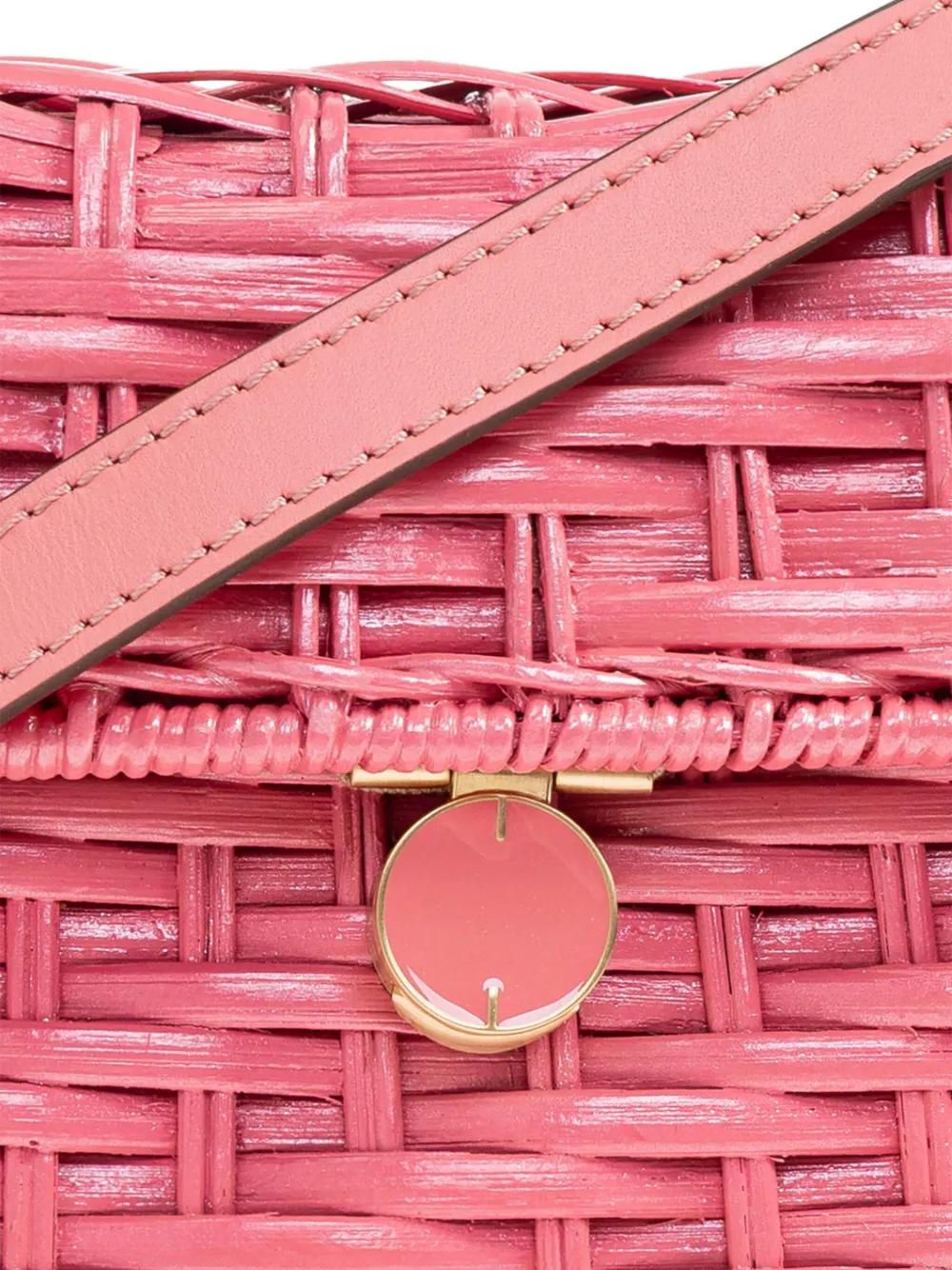 pink rattan fibres top handle woven design circular claps detachable shoulder strap
