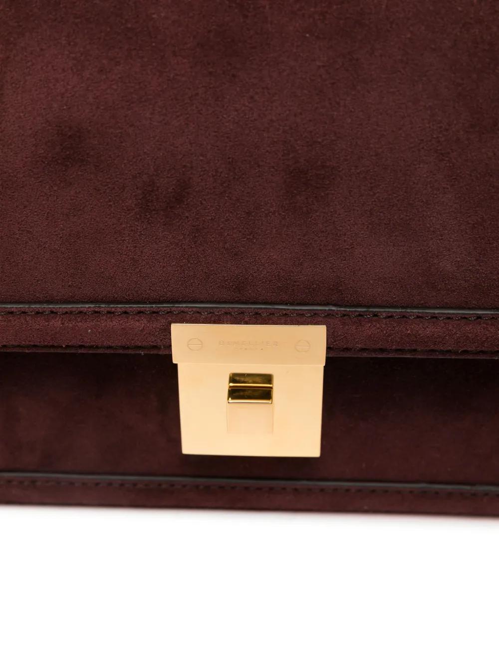 burgundy suede texture gold-tone clasp rectangular shape adjustable strap flap closure