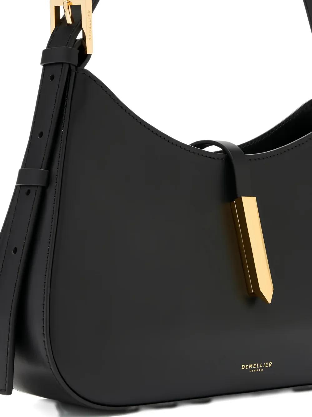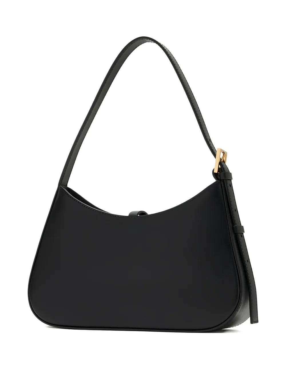 black curved shape gold-tone clasp adjustable top handle slender strap