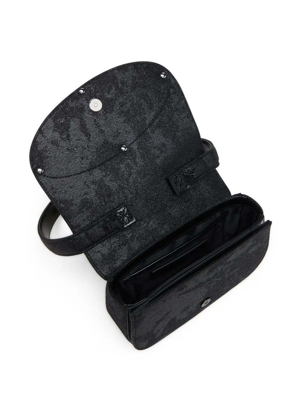 black foldover top with magnetic fastening single top handle adjustable detachable shoulder strap main compartment internal slip pocket
