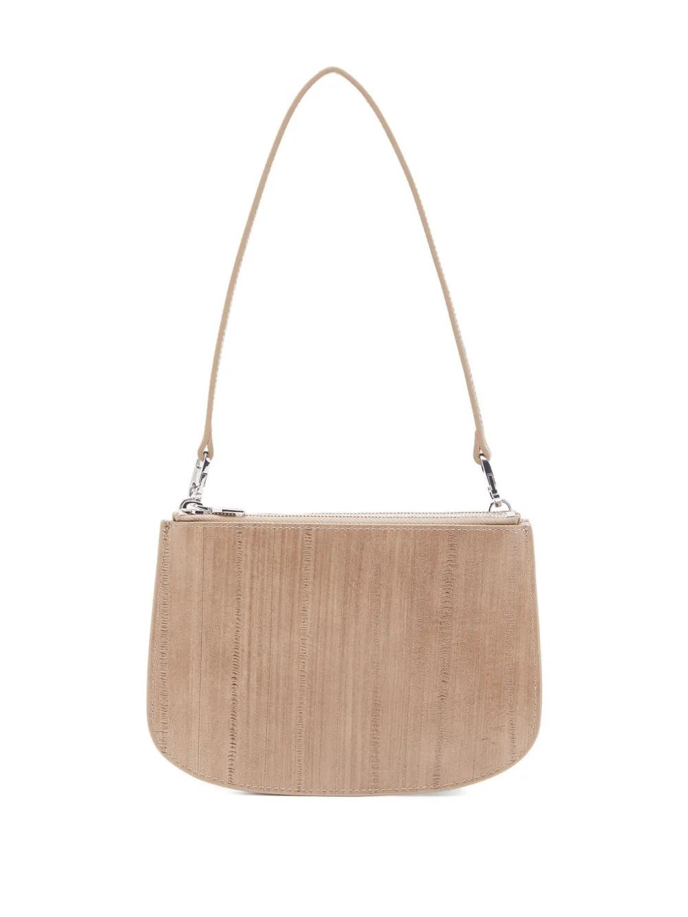 almond beige top zip fastening single flat top handle adjustable detachable shoulder strap partitioned compartment