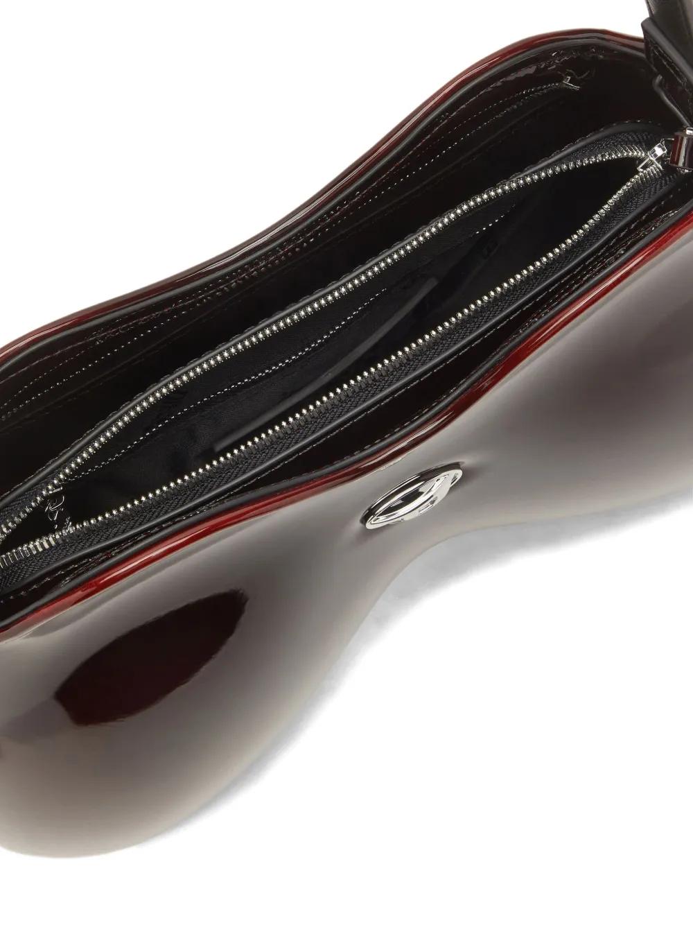 taupe brown calf leather patent finish glass crystal embellishment logo embellishment internal logo patch magnetic strap fastening single top handle detachable shoulder strap main compartment