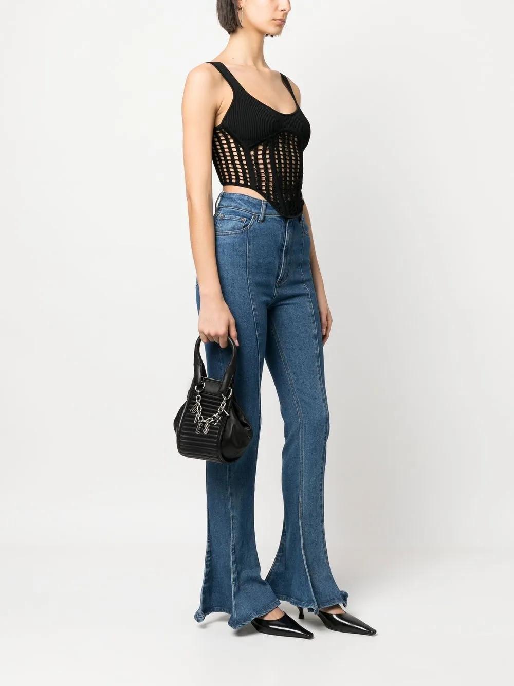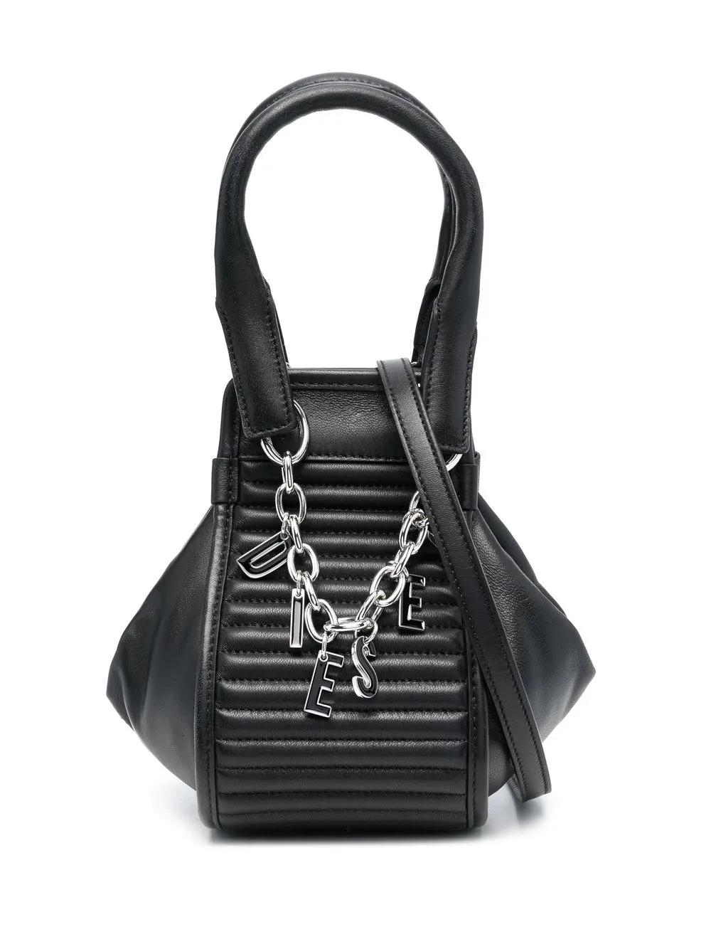 jet black sheepskin logo charm two rolled top handles foldover top with press-stud fastening top zip fastening