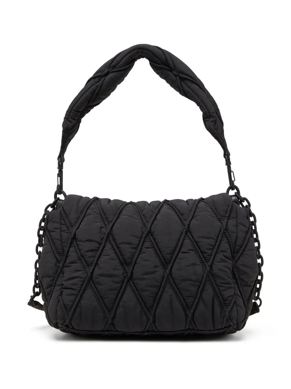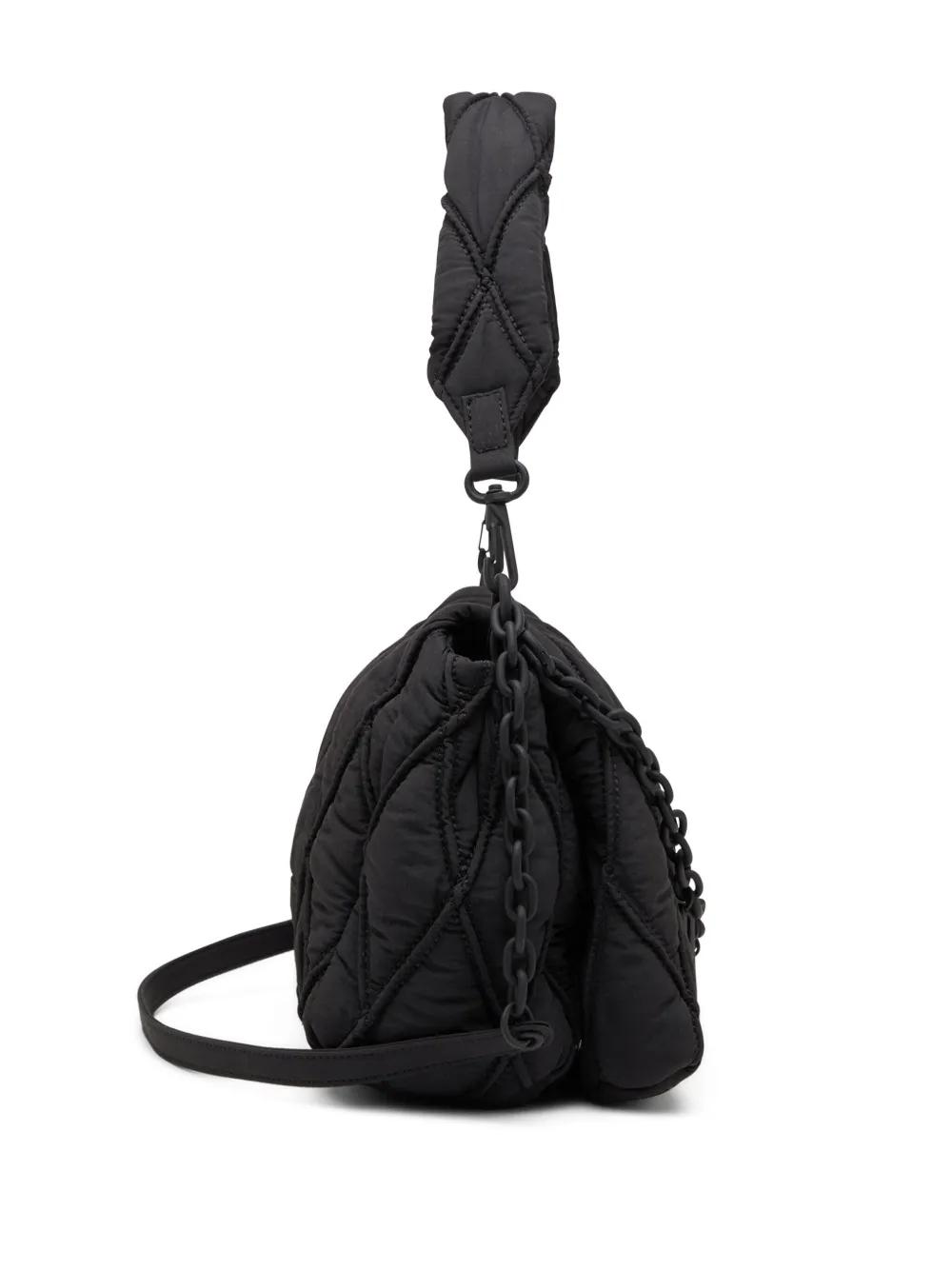 black padded design quilted tonal design foldover top with magnetic fastening detachable shoulder strap chain-link shoulder strap chain-link detailing charm detail main compartment internal logo patch internal zip-fastening pocket This piece comes complete with a protective dust bag.