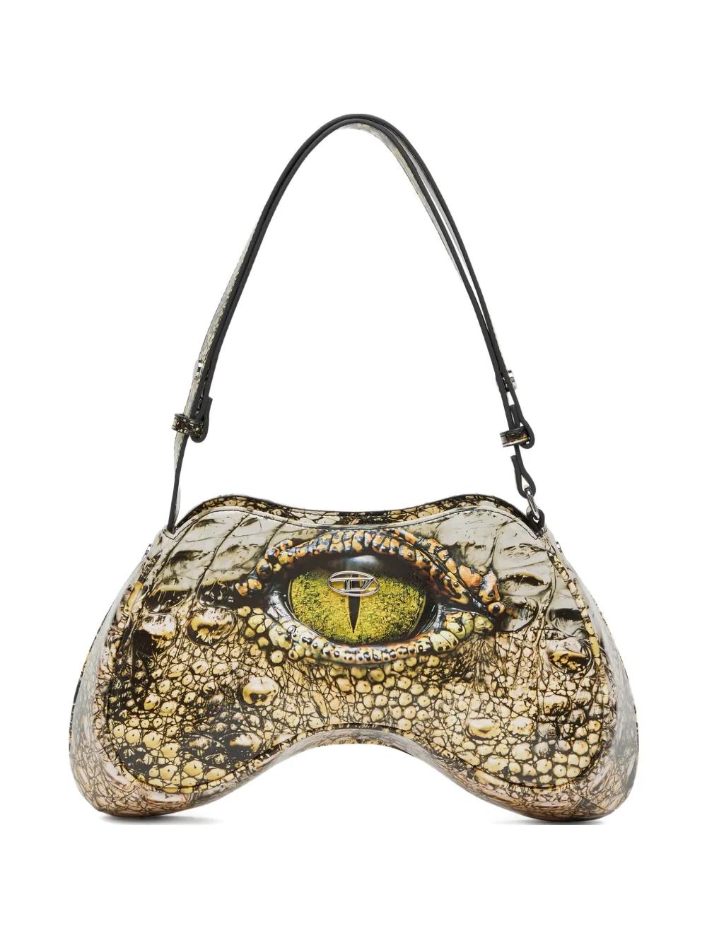 beige animal print Oval D logo plaque adjustable shoulder strap top zip fastening
