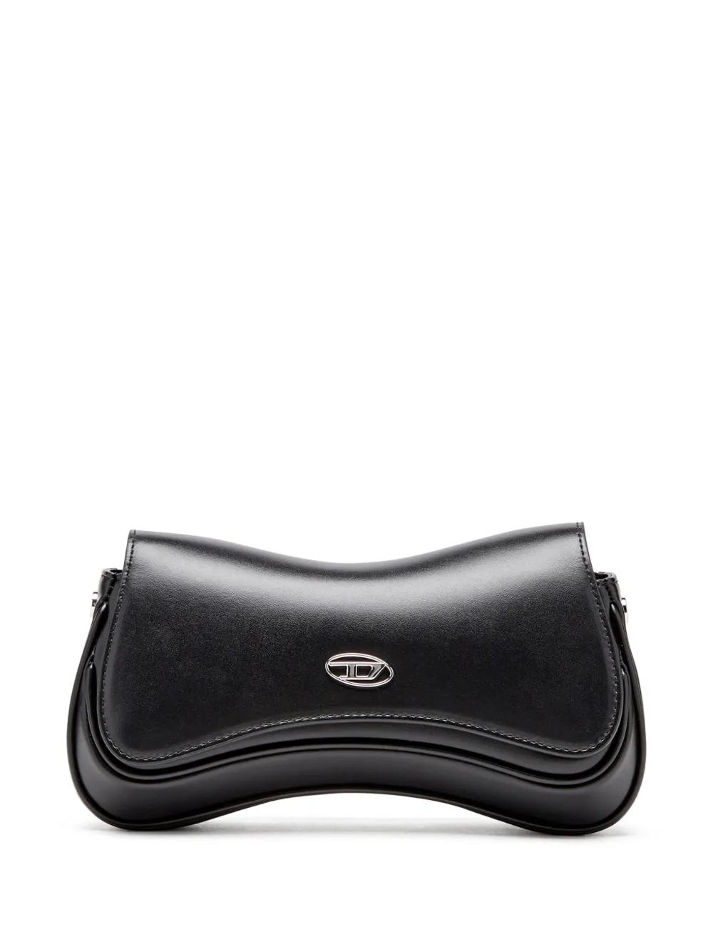 black calf leather smooth grain foldover top with magnetic fastening adjustable shoulder strap Oval D logo plaque silver-tone hardware main compartment internal logo patch internal zip-fastening pocket
