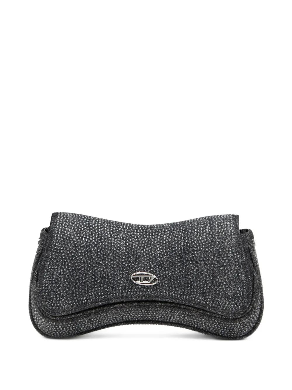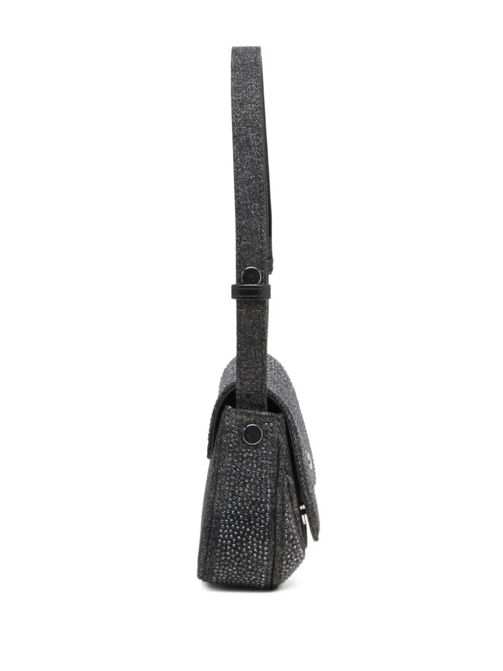 black foldover top with magnetic fastening adjustable top handle Oval D logo plaque crystal embellishment