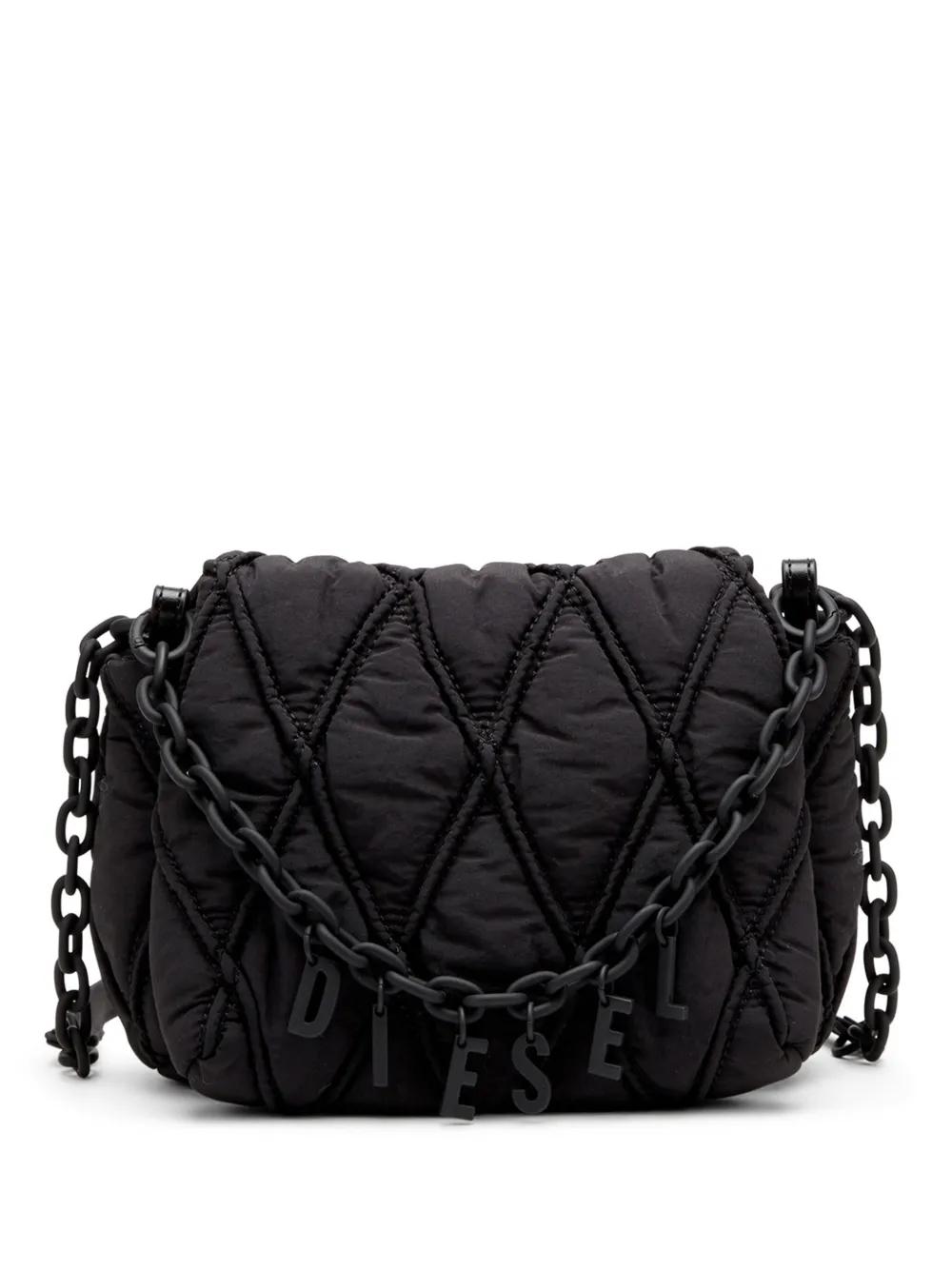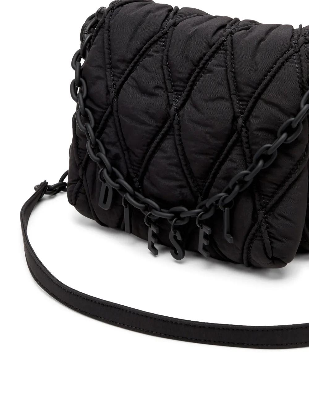 black padded design quilted tonal design foldover top with magnetic fastening chain-link shoulder strap chain-link detailing charm detail main compartment internal logo patch internal zip-fastening pocket This piece comes complete with a protective dust bag.