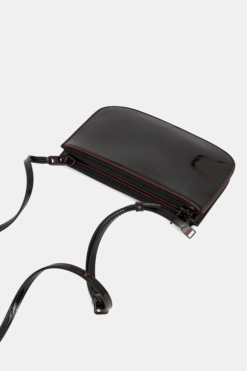 - Model wykonany z włókien, wyprodukowanych przy użyciu zrównoważonych procesów produkcyjnych, zmniejszających tym samym ich wpływ na środowisko. - Zapięcie na suwak. - Posiada odpinany uchwyt i odpinany pasek z regulacją. - Nie mieści formatu A4. - Dołączony tekstylny worek zabezpiecza produkt przed kurzem. - Dwukomorowy model. - Wsuwana kieszeń wewnętrzna. - Długość minimalna paska: 96 cm. - Długość maksymalna paska: 114 cm. - Długość uchwytu: 51 cm. - Głębokość: 2,5 cm. - Wysokość: 15 cm. - Szerokość u podstawy: 21 cm.
