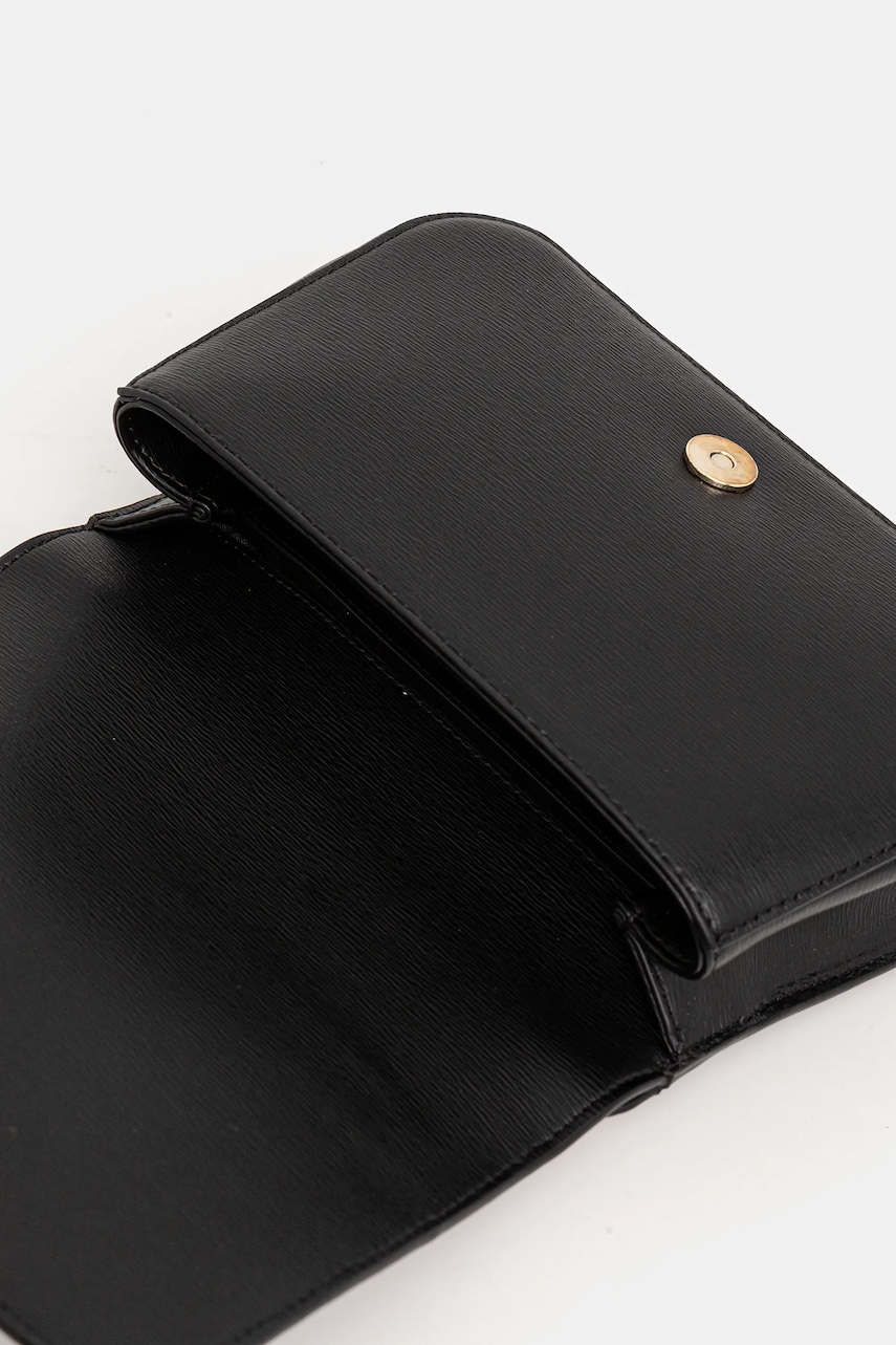 - Klapa zapinana na magnes. - Długie uchwyty dla komfortowego noszenia w dłoni lub na ramieniu. - Posiada kieszonki wewnętrzne, w tym jedną zapinaną na suwak. - Z przodu kieszonka zapinana na suwak. - Nie mieści formatu A4. - Model z podszewką. - Długość uchwytów: 69 cm. - Głębokość: 6 cm. - Wysokość: 15 cm. - Szerokość u podstawy: 22 cm.