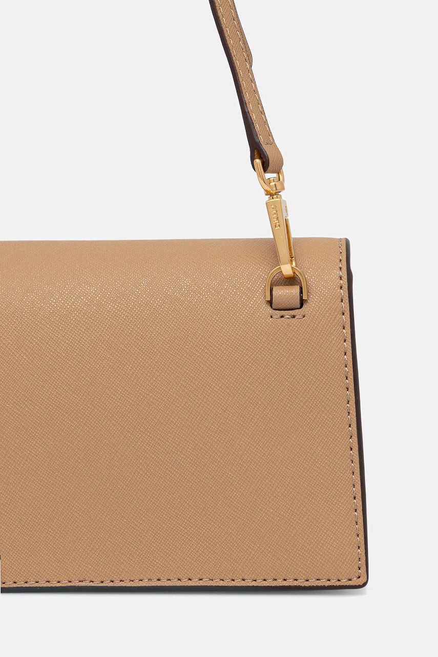 - Klapa zapinana na magnes. - Model bez podszewki. - Posiada kieszonkę wewnętrzną zapinaną na suwak i przegrody na karty. - Torebka do noszenia w ręku lub na ramieniu. - Dopinany dłuższy pasek z regulacją. - Nie mieści formatu A4. - Dołączony tekstylny worek zabezpiecza produkt przed kurzem. - Liczba przegródek na karty: 2. - Długość minimalna paska: 105 cm. - Długość maksymalna paska: 129 cm. - Głębokość: 4,5 cm. - Wysokość: 11,5 cm. - Szerokość u podstawy: 18,5 cm.