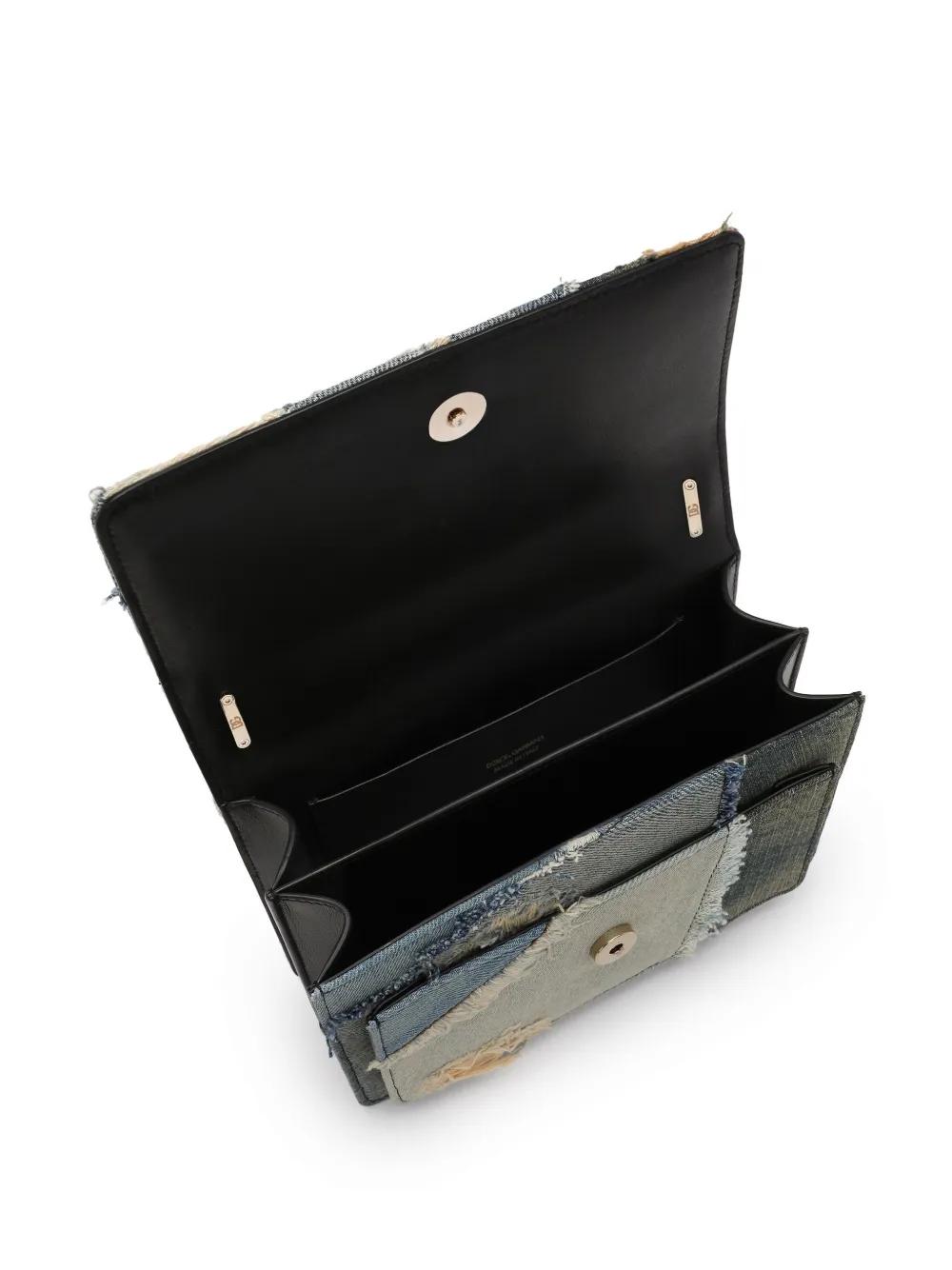 Dolce & Gabbana logo plaque denim patchwork cross body bag - Blue