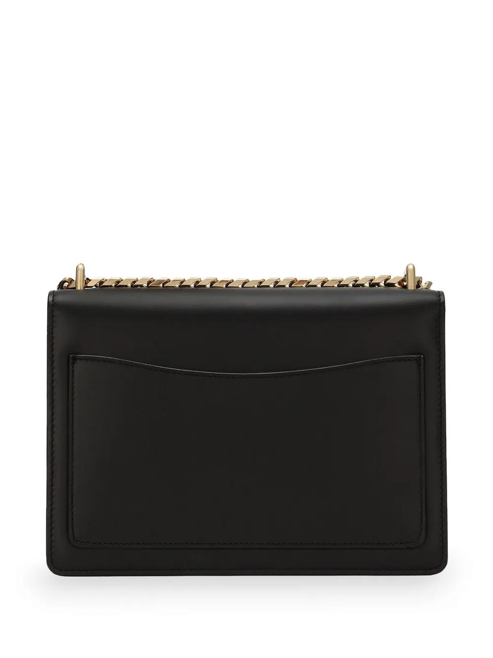 black calf leather gold-tone hardware gold-tone logo plaque cable-link chain foldover top with magnetic fastening partitioned compartment internal logo stamp