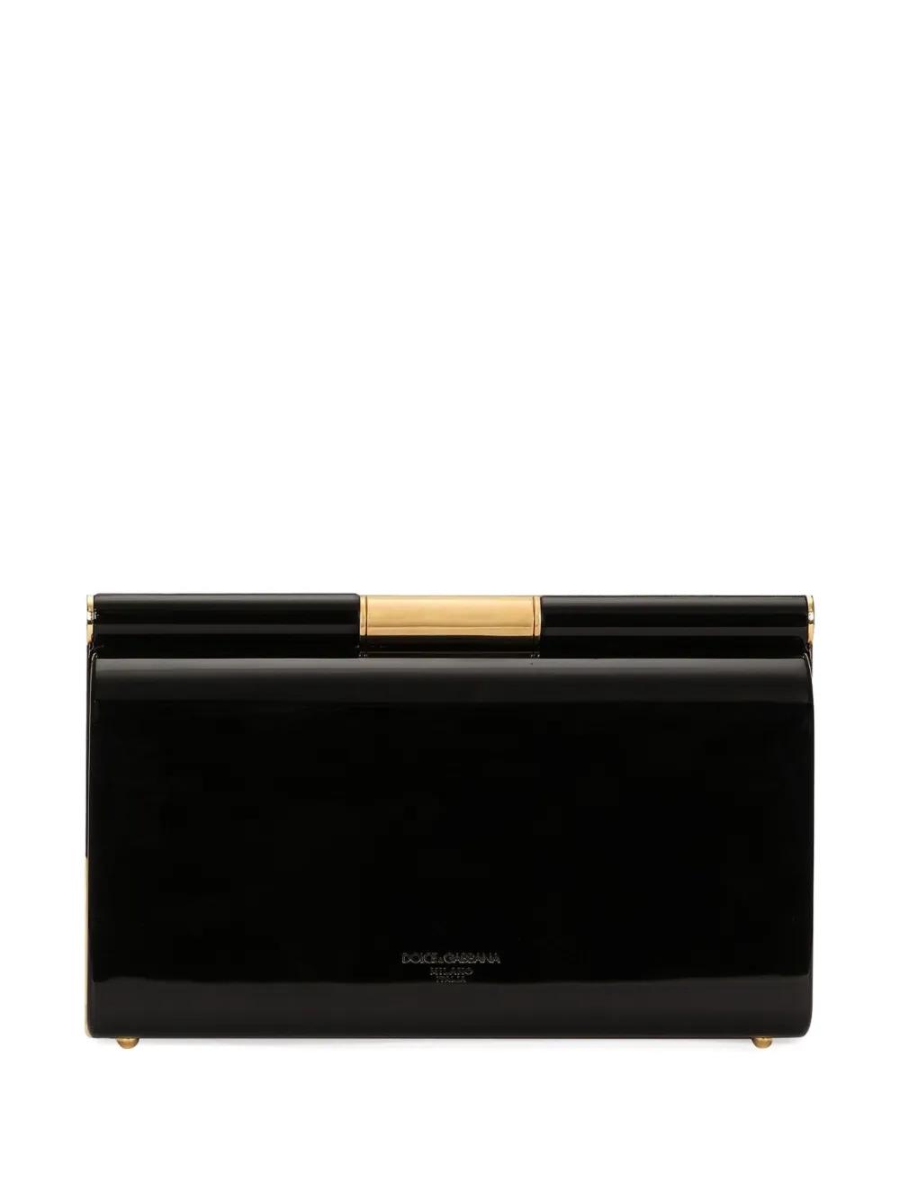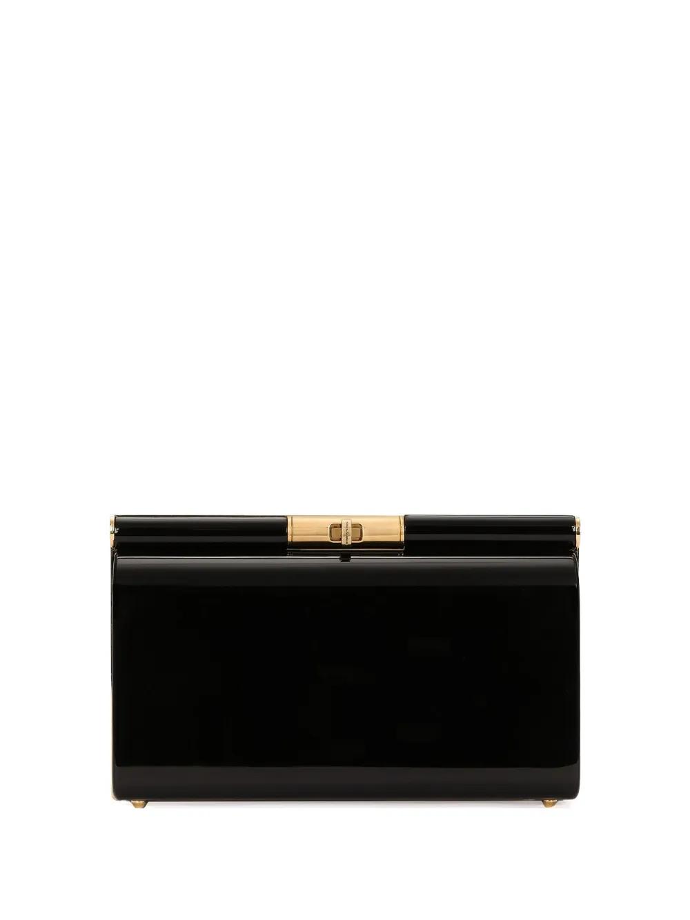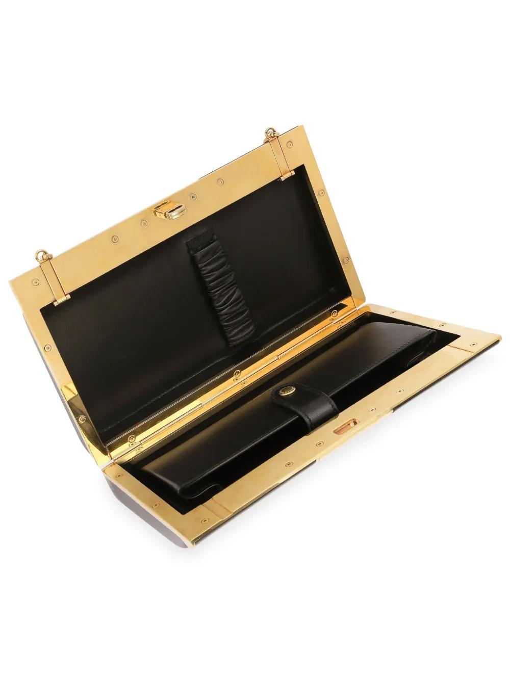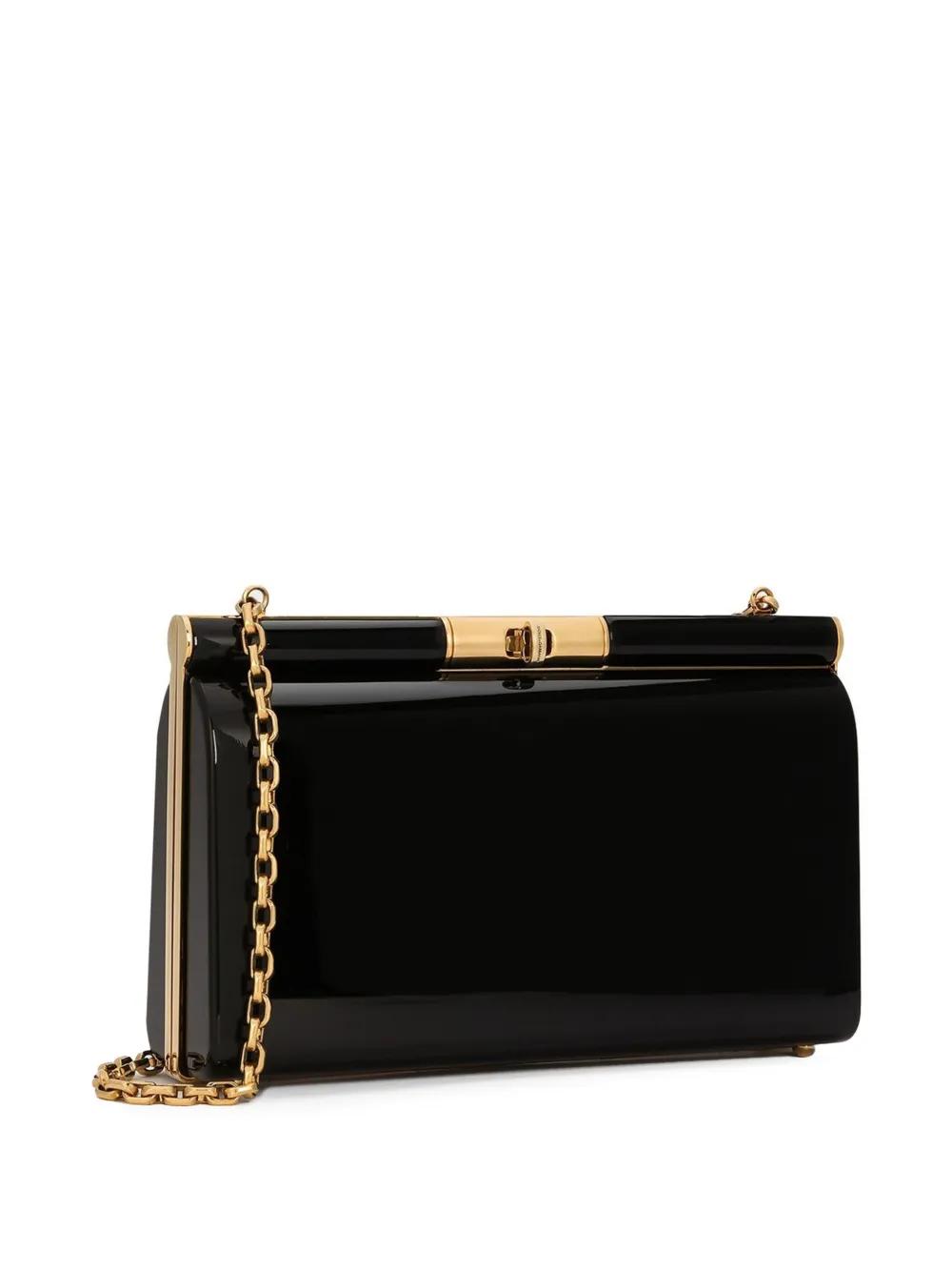 black clasp fastening detachable chain-link shoulder strap internal slip pocket metal feet