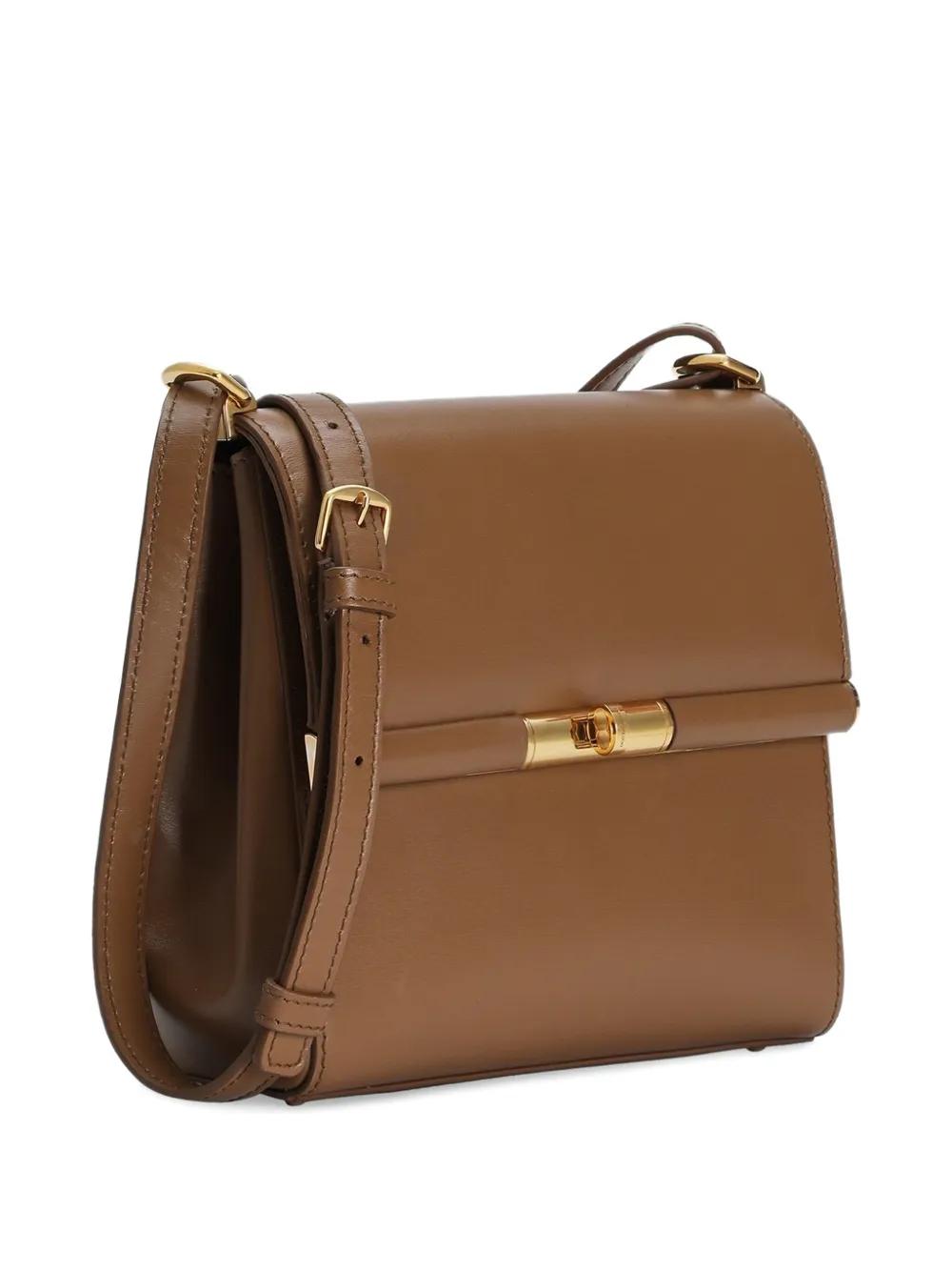 brown leather construction gold-tone clasp rectangular shape