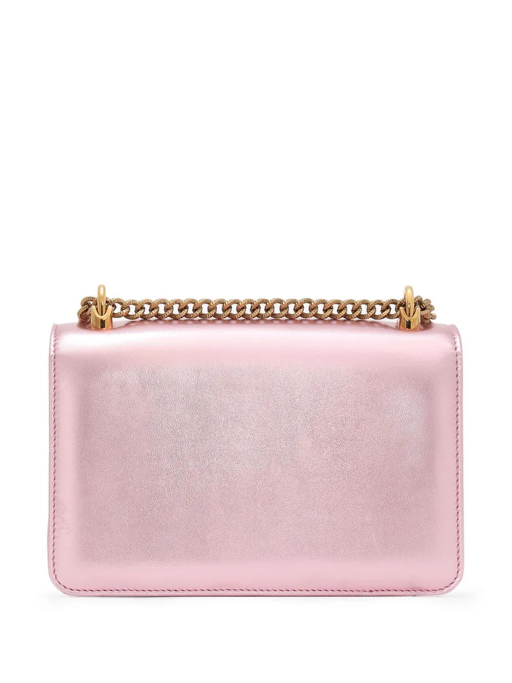 light pink lambskin metallic effect gold-tone hardware logo-buckle detail foldover top clasp fastening adjustable chain-link shoulder strap partitioned compartment internal zip-fastening pocket internal logo plaque