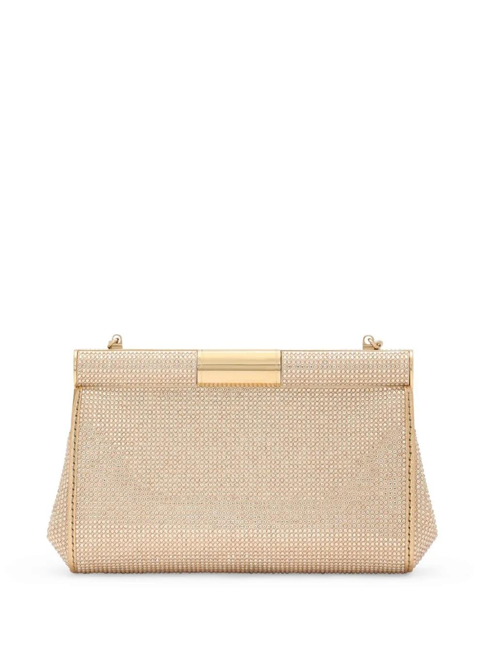 beige crystal embellishment detachable chain-link shoulder strap twist-lock fastening main compartment internal slip pocket satin lining gold-tone hardware This piece comes complete with a protective dust bag.