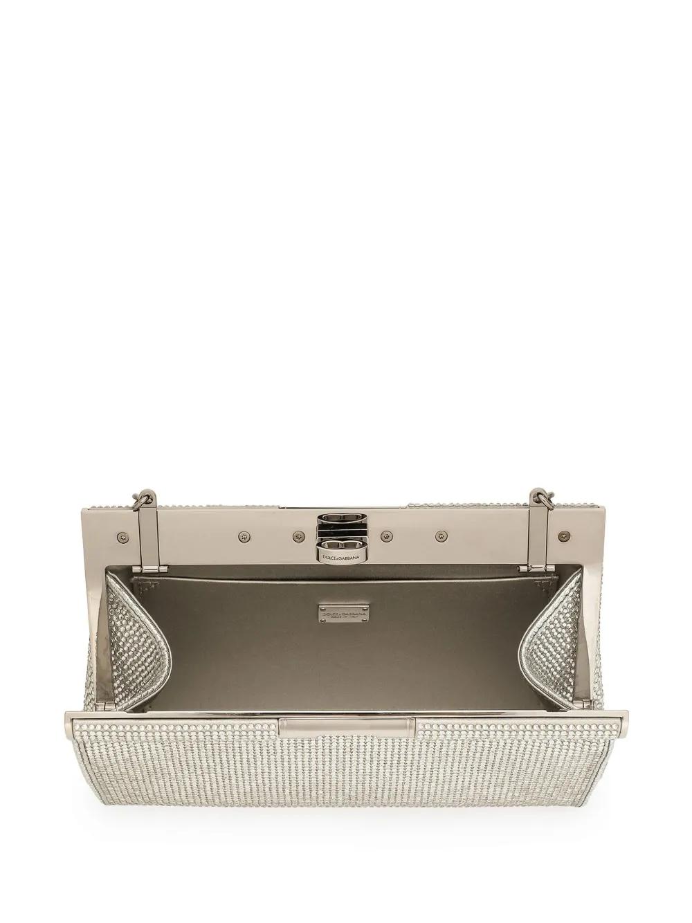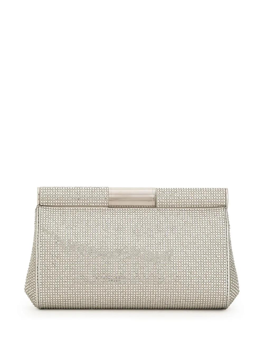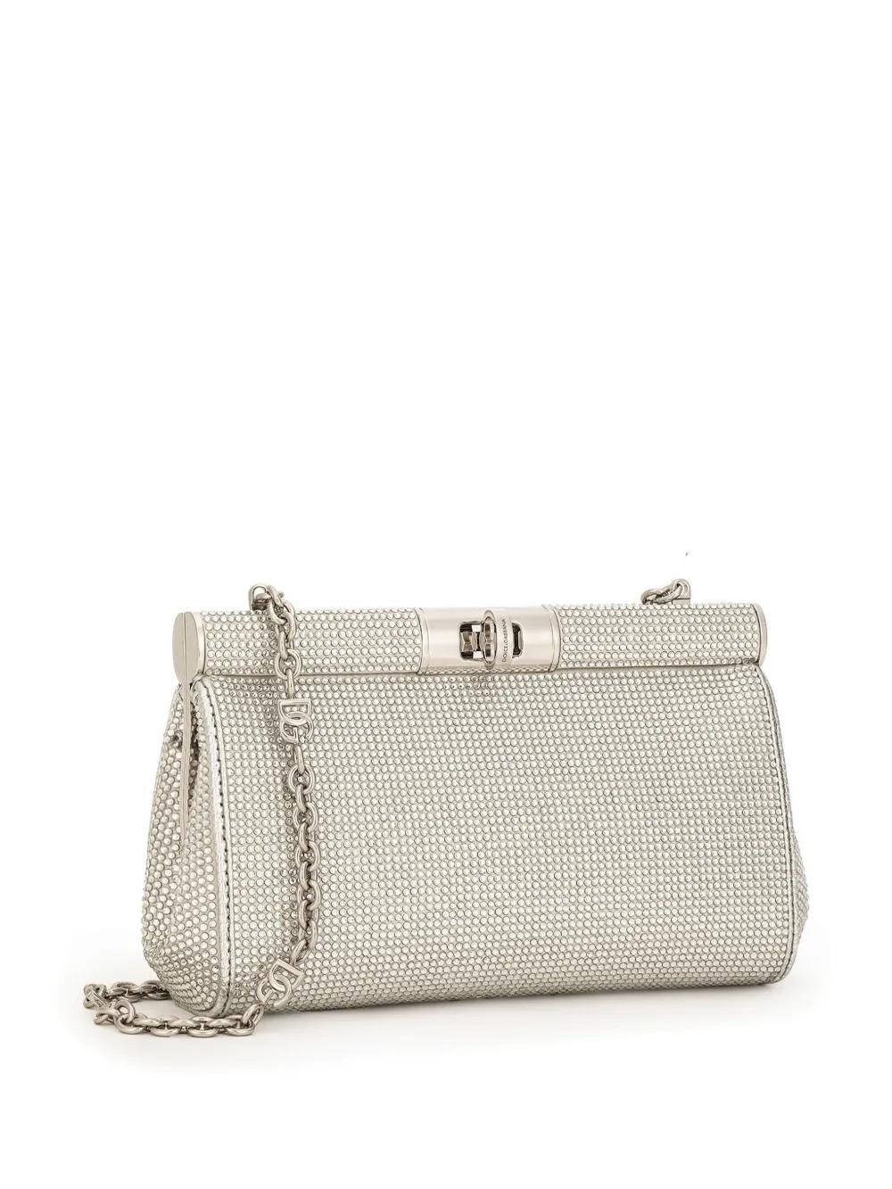 silver-tone rhinestone embellishment chain-link shoulder strap internal slip pocket flip-lock fastening
