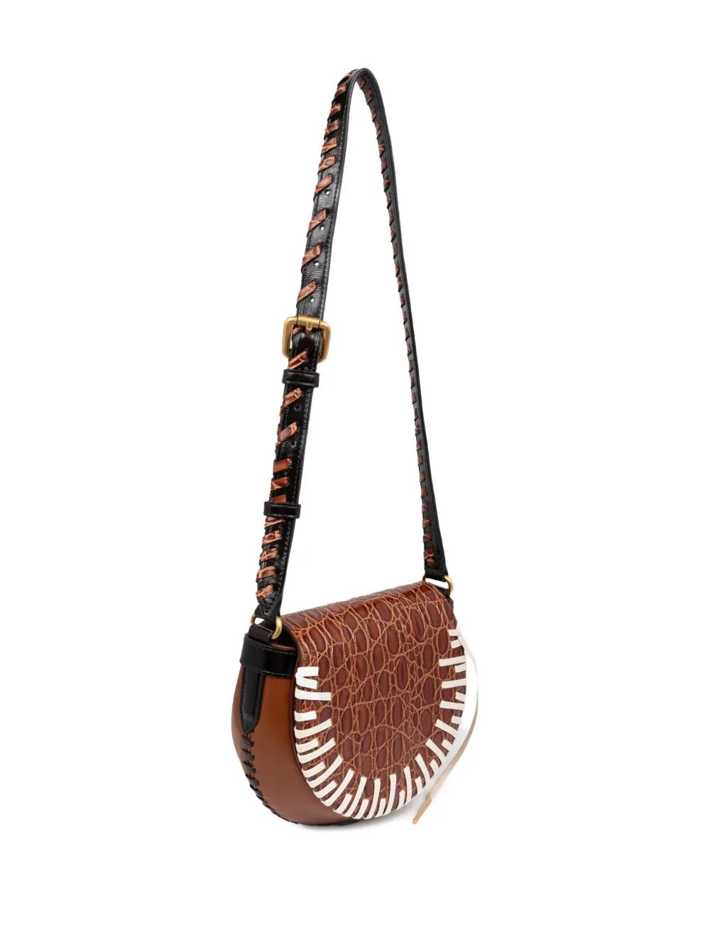 brown crocodile-effect leather braided leather strap half-moon shape gold-tone hardware off-white trim