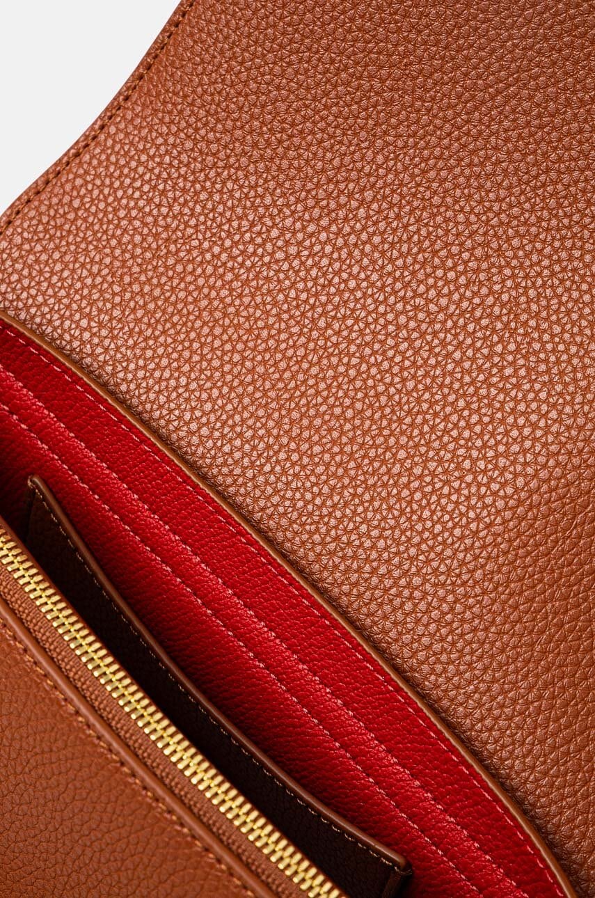 - Klapa zapinana na magnes. - Odpinany pasek z regulacją. - Nie mieści formatu A4. - Kieszonka wewnętrzna zapinana na suwak - Posiada przegrodę na kartę. - Długość minimalna paska: 76 cm. - Długość maksymalna paska: 117 cm. - Głębokość: 4 cm. - Wysokość: 12 cm. - Szerokość u podstawy: 21 cm.