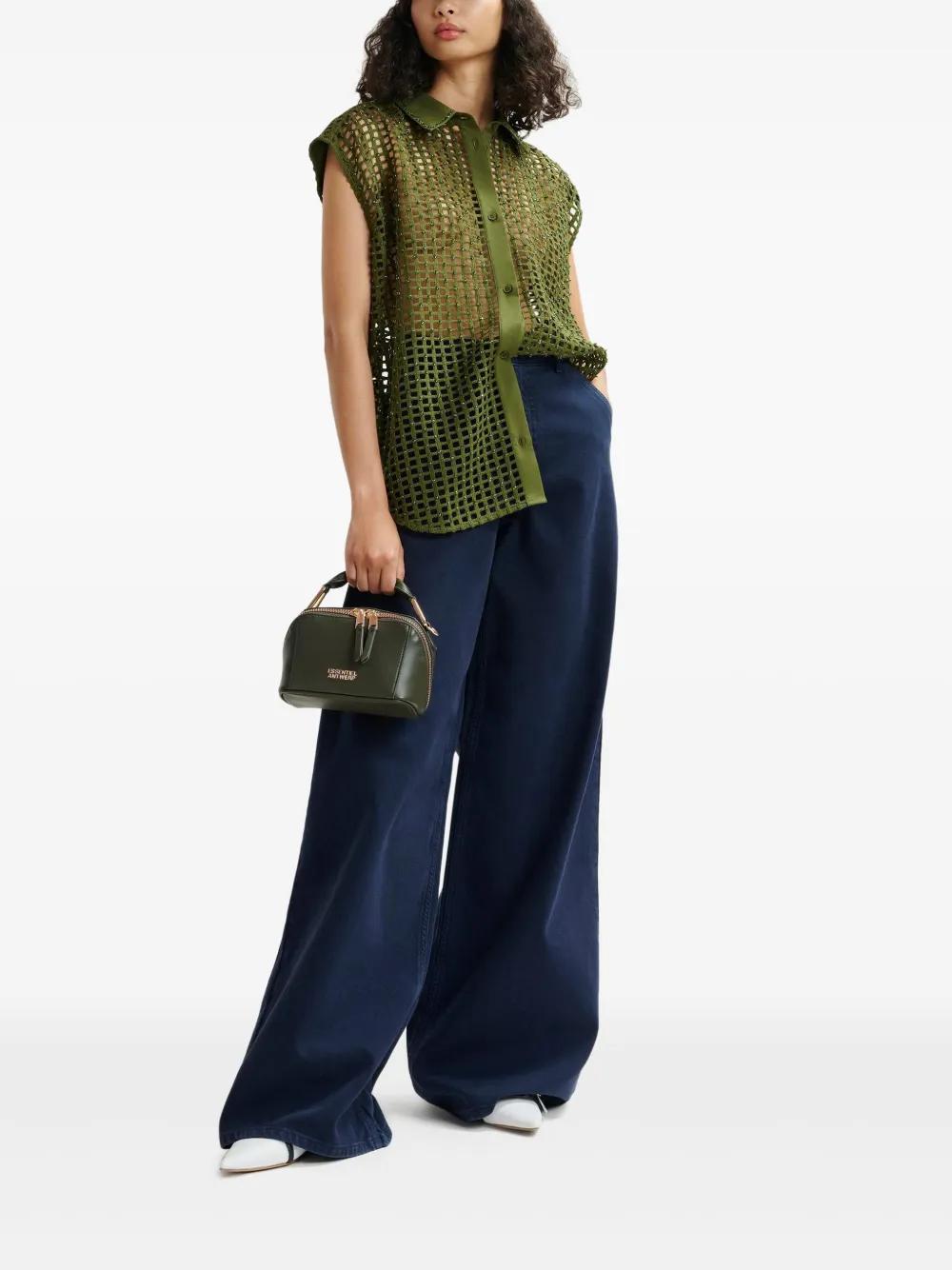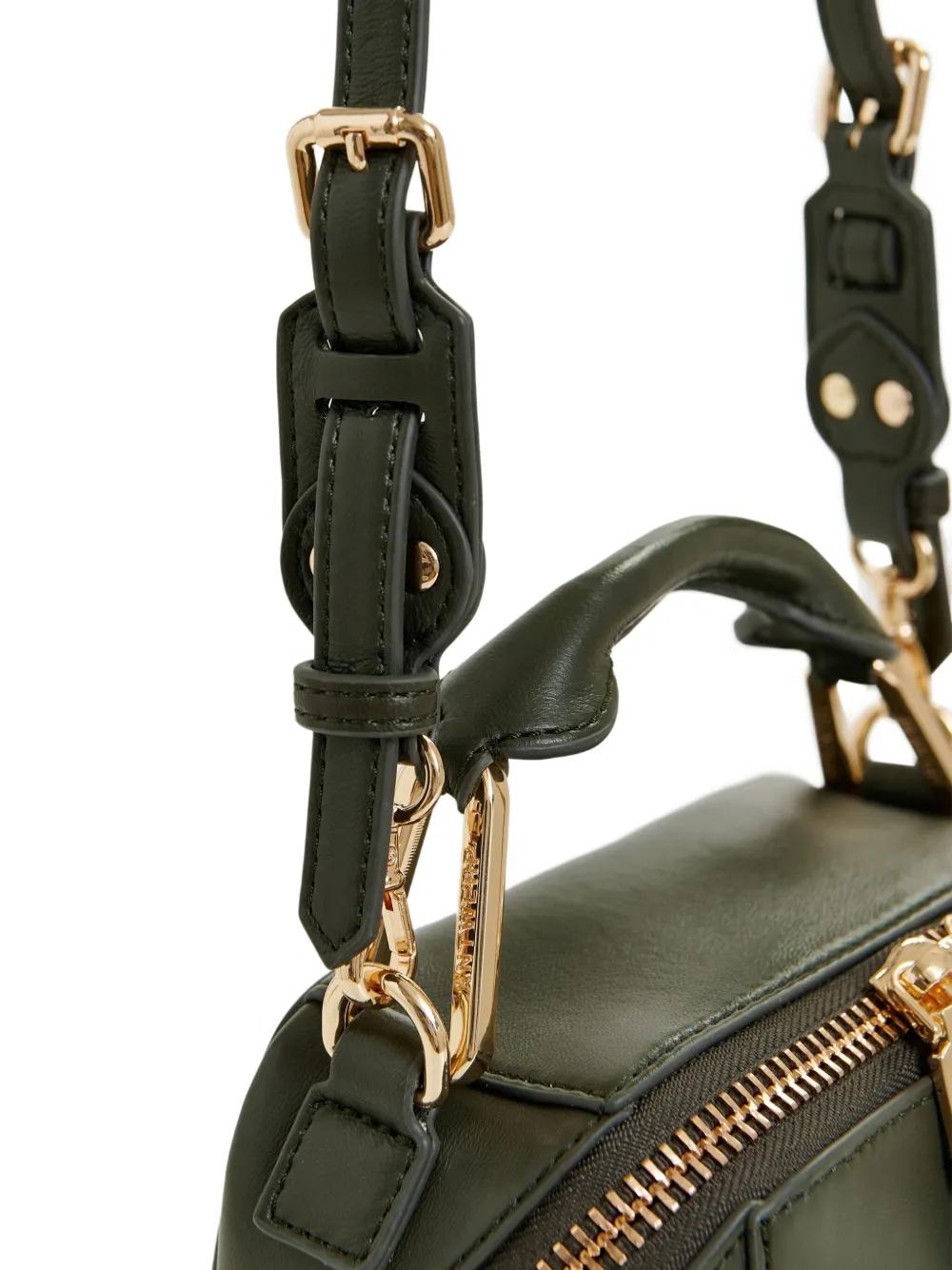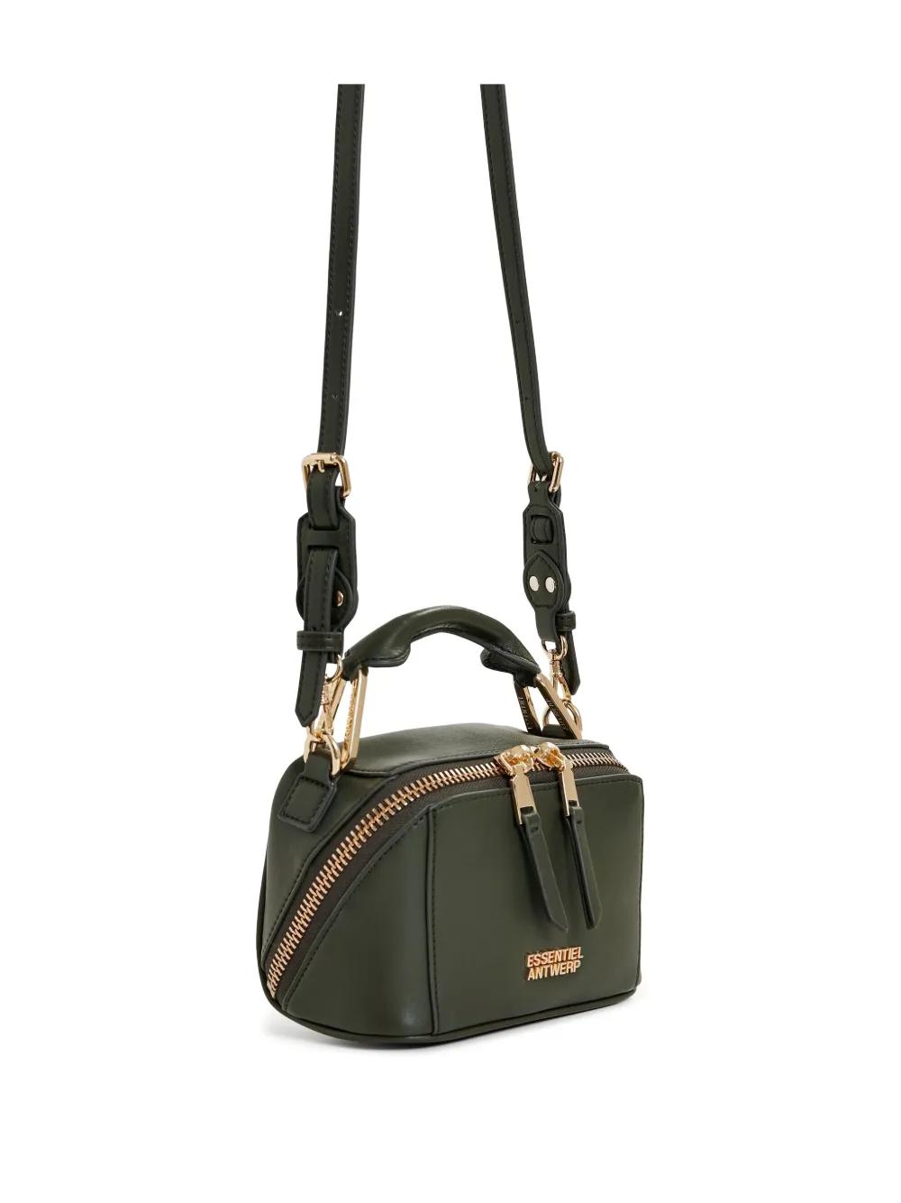 dark green all-around zip fastening single detachable top handle adjustable detachable shoulder strap internal zip-fastening pocket