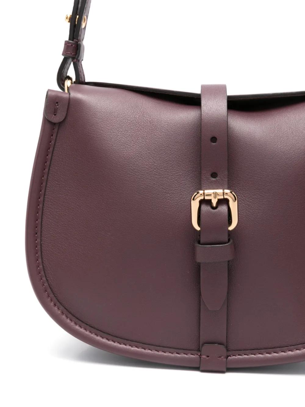 purple half-moon shape buckle fastening adjustable shoulder strap calf leather