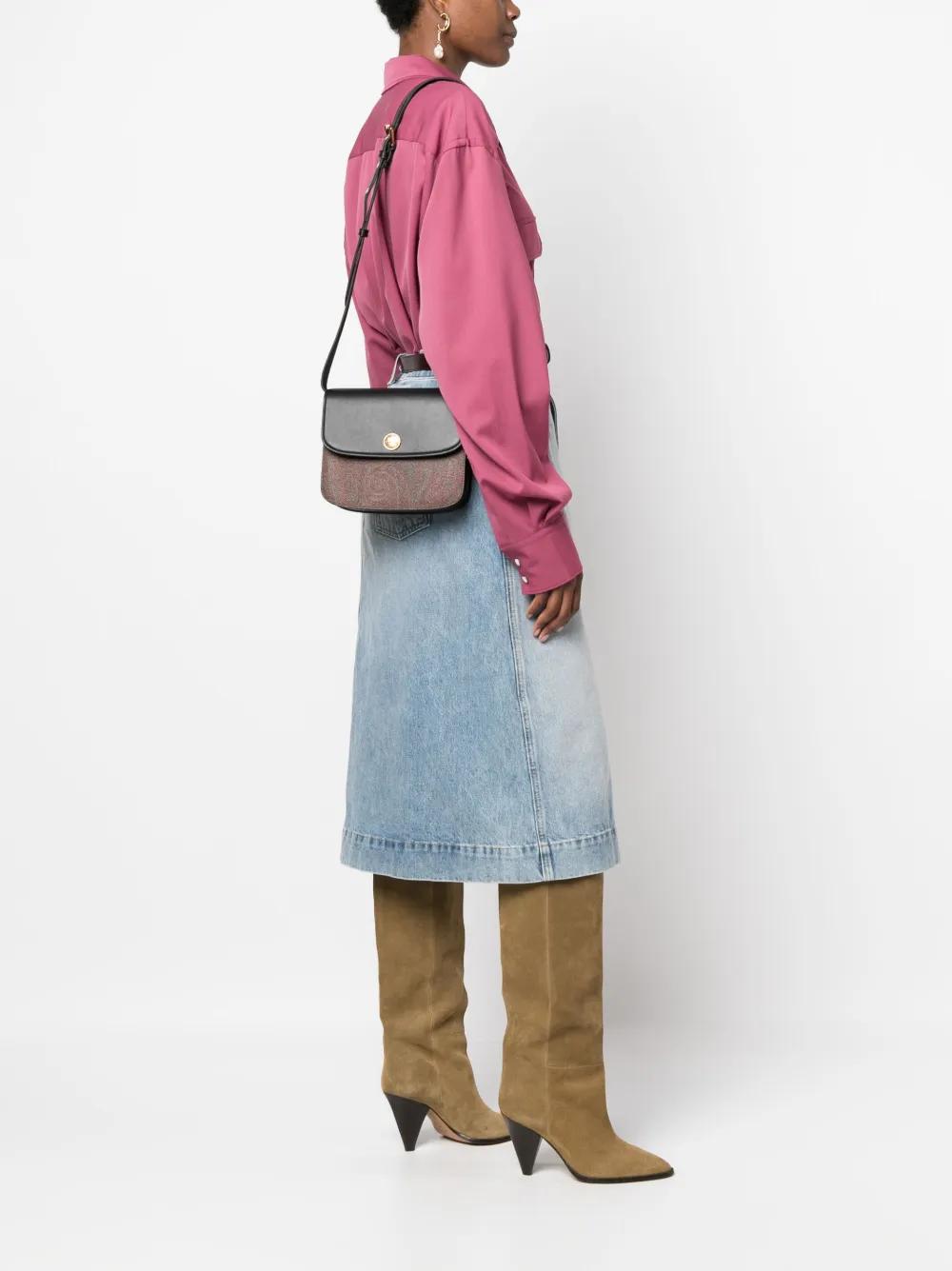 black calf leather cotton blend signature Pegaso motif logo plaque gold-tone hardware paisley print foldover top with magnetic fastening adjustable detachable shoulder strap main compartment