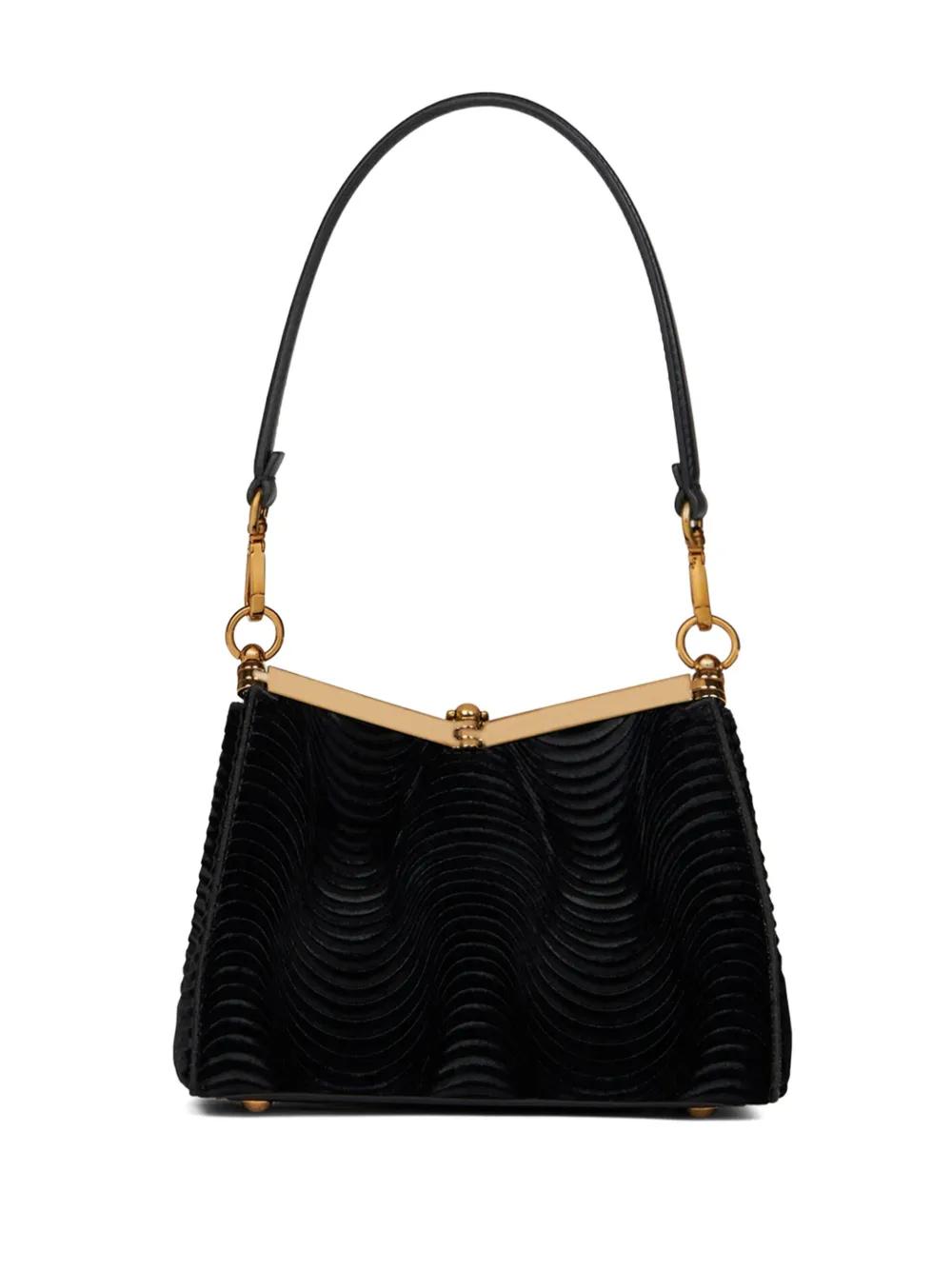 black velvet top clasp fastening single detachable top handle adjustable detachable shoulder strap logo charm signature Pegaso motif pleat detailing logo-engraved arm main compartment