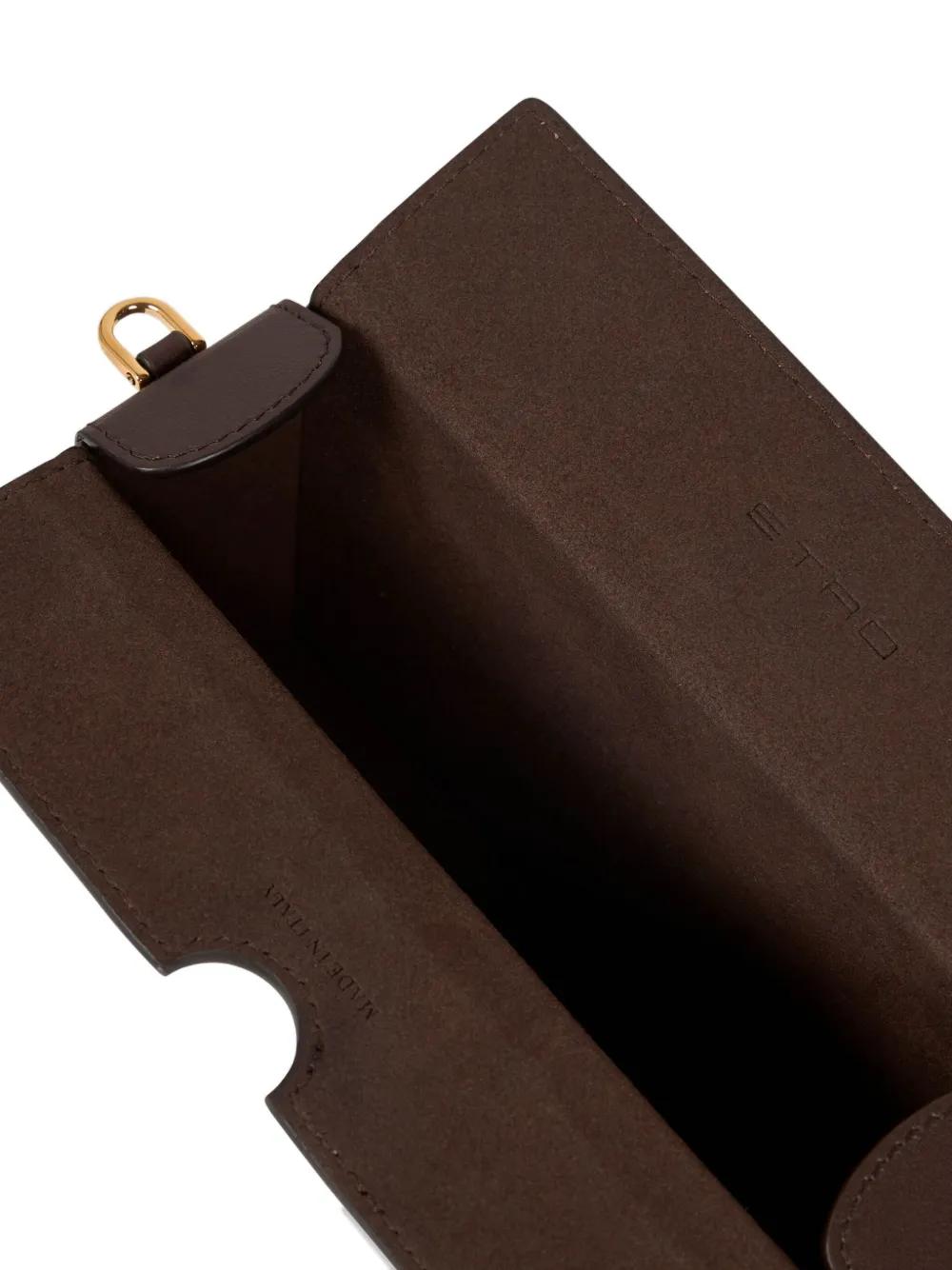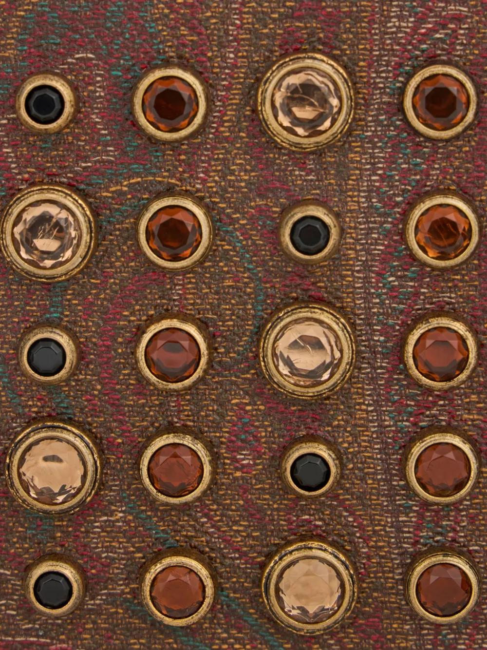 dark brown paisley pattern jewel embellishments rectangular shape detachable shoulder strap leather trim