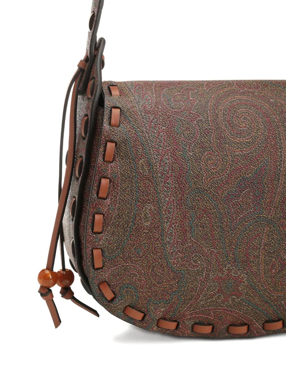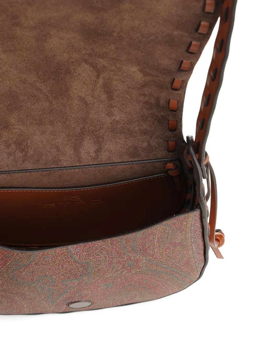 brown adjustable shoulder strap foldover top with magnetic fastening main compartment internal slip pocket