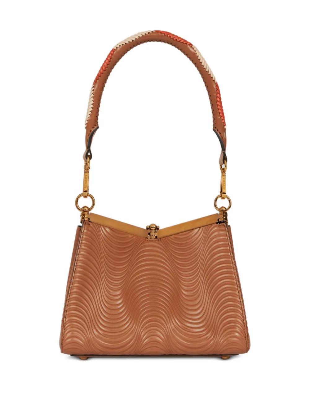 caramel brown clasp fastening single detachable top handle detachable shoulder strap logo charm
