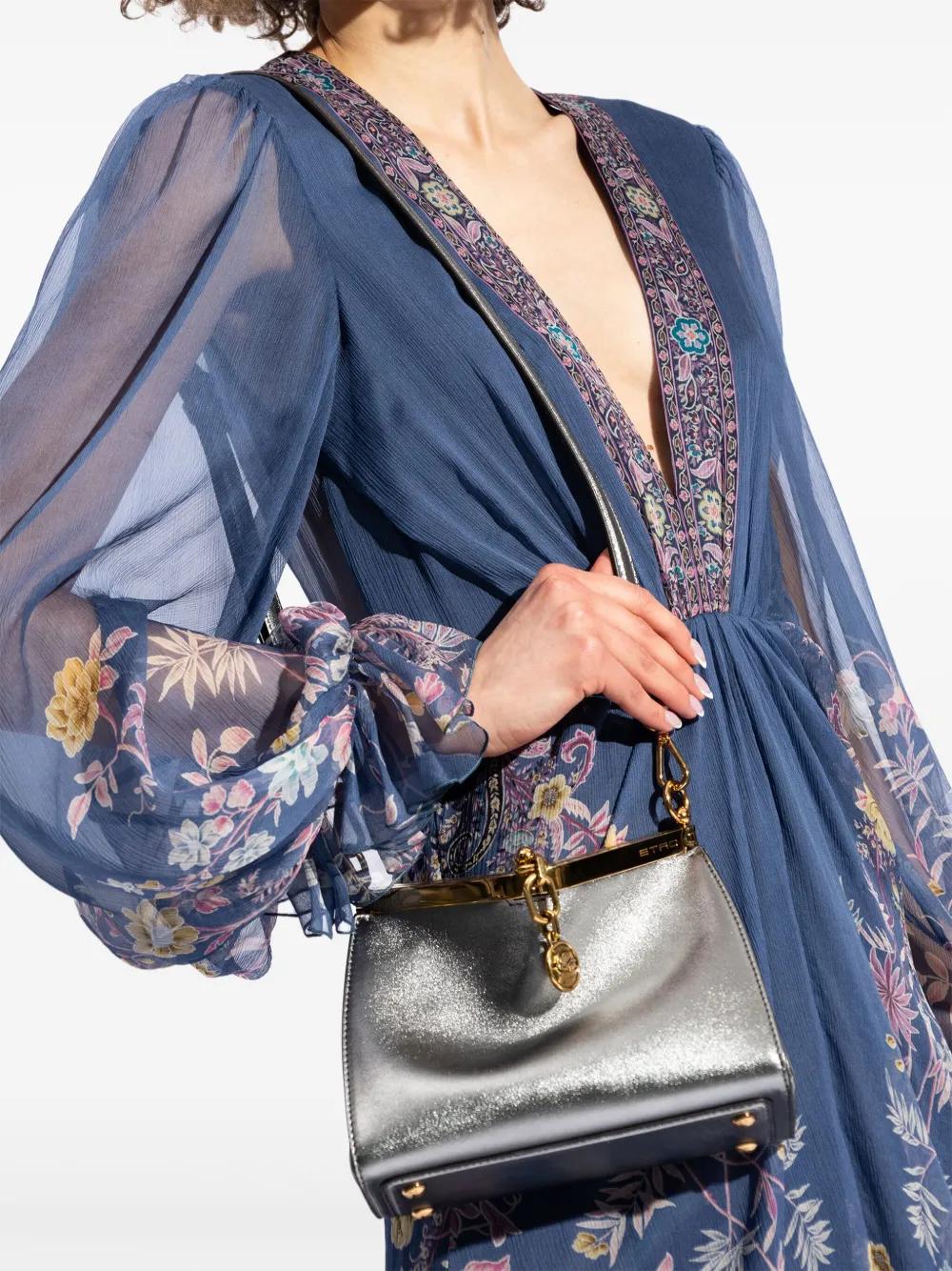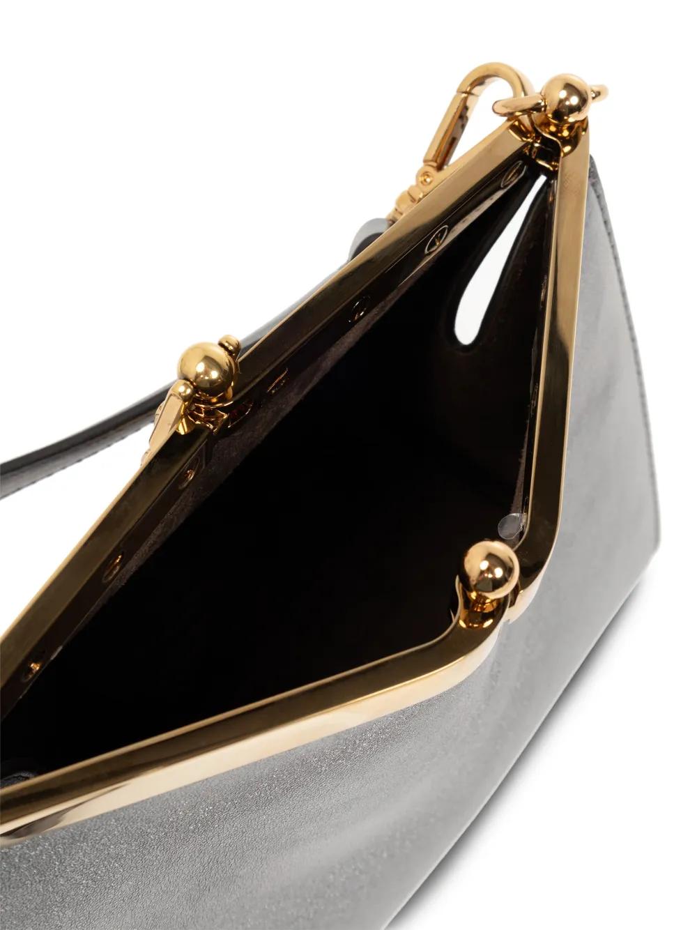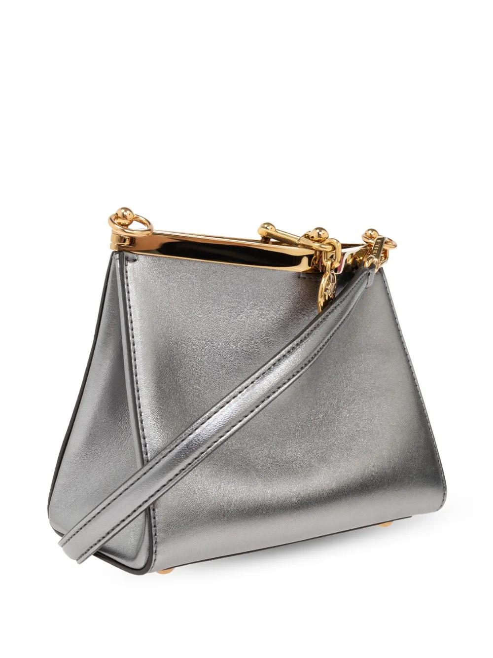 silver-tone calf leather metallic finish gold-tone hardware logo charm detachable shoulder strap top clasp fastening main compartment This piece comes complete with a protective dust bag.
