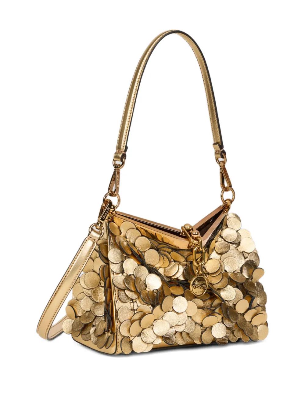 ETRO Vela laminated-sequin small shoulder bag - Gold