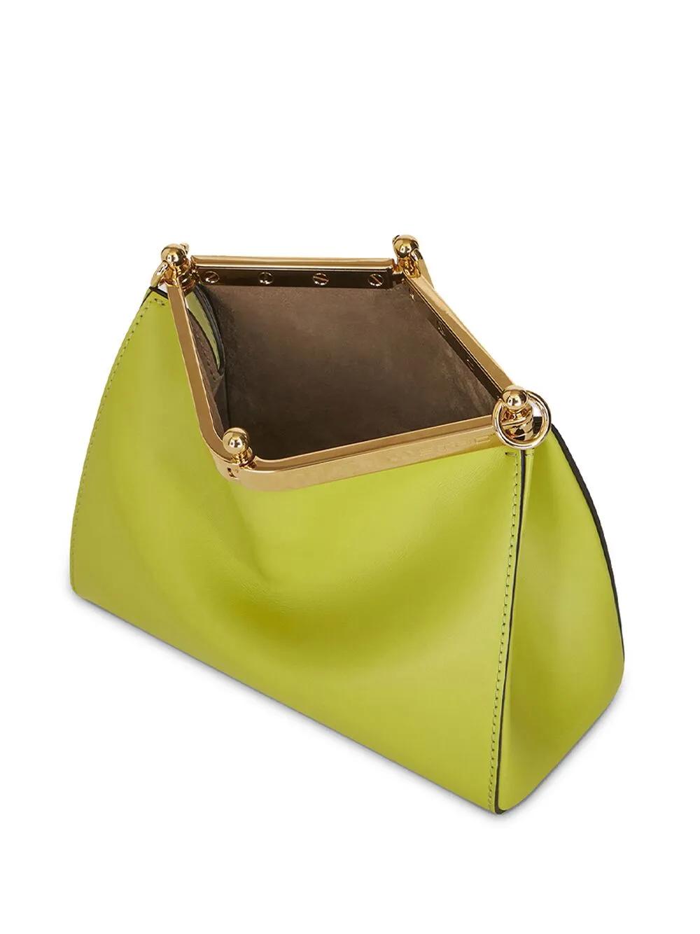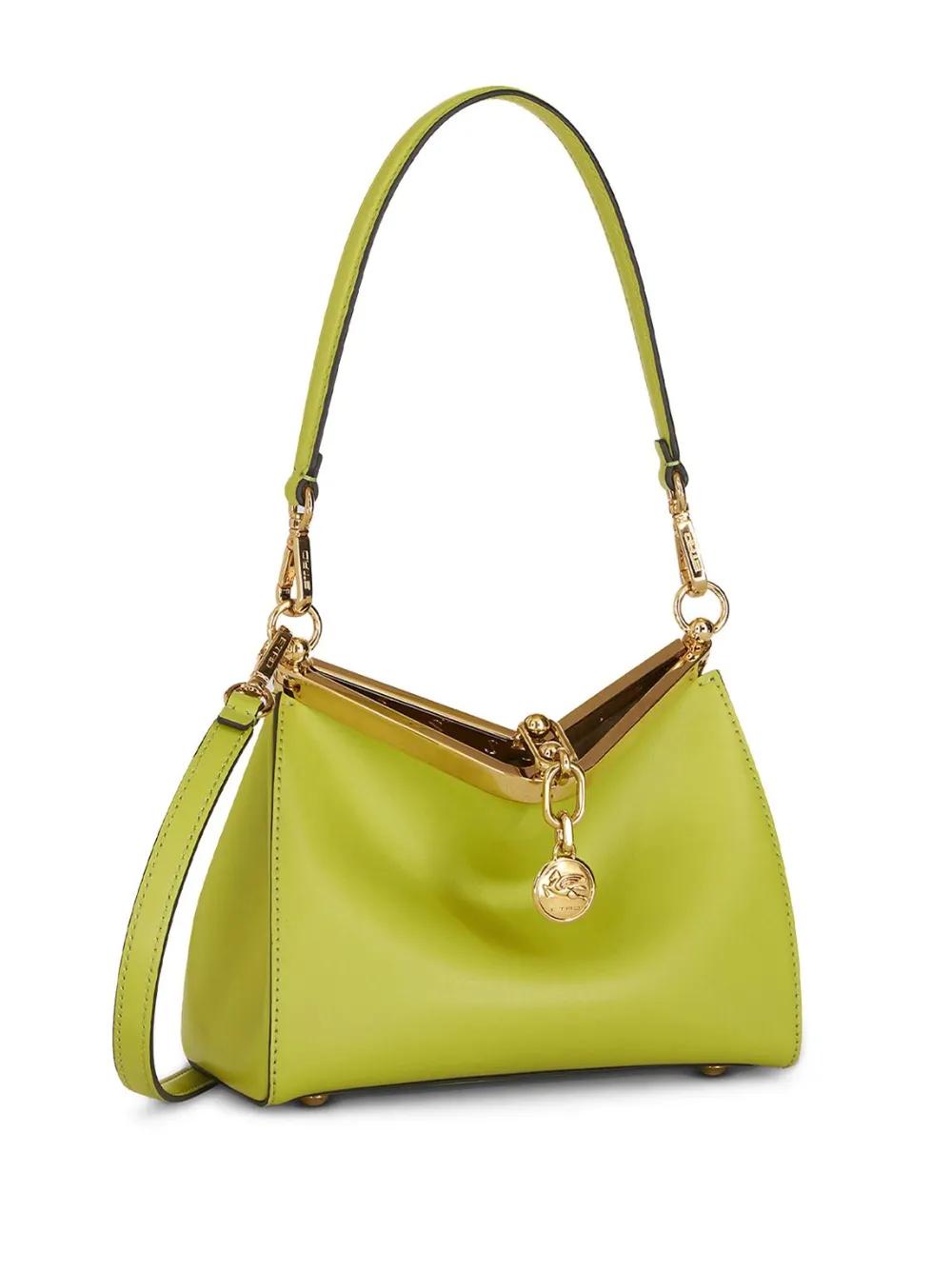 lime green calfskin gold-tone hardware logo charm signature Pegaso motif single flat top handle clasp fastening adjustable shoulder strap