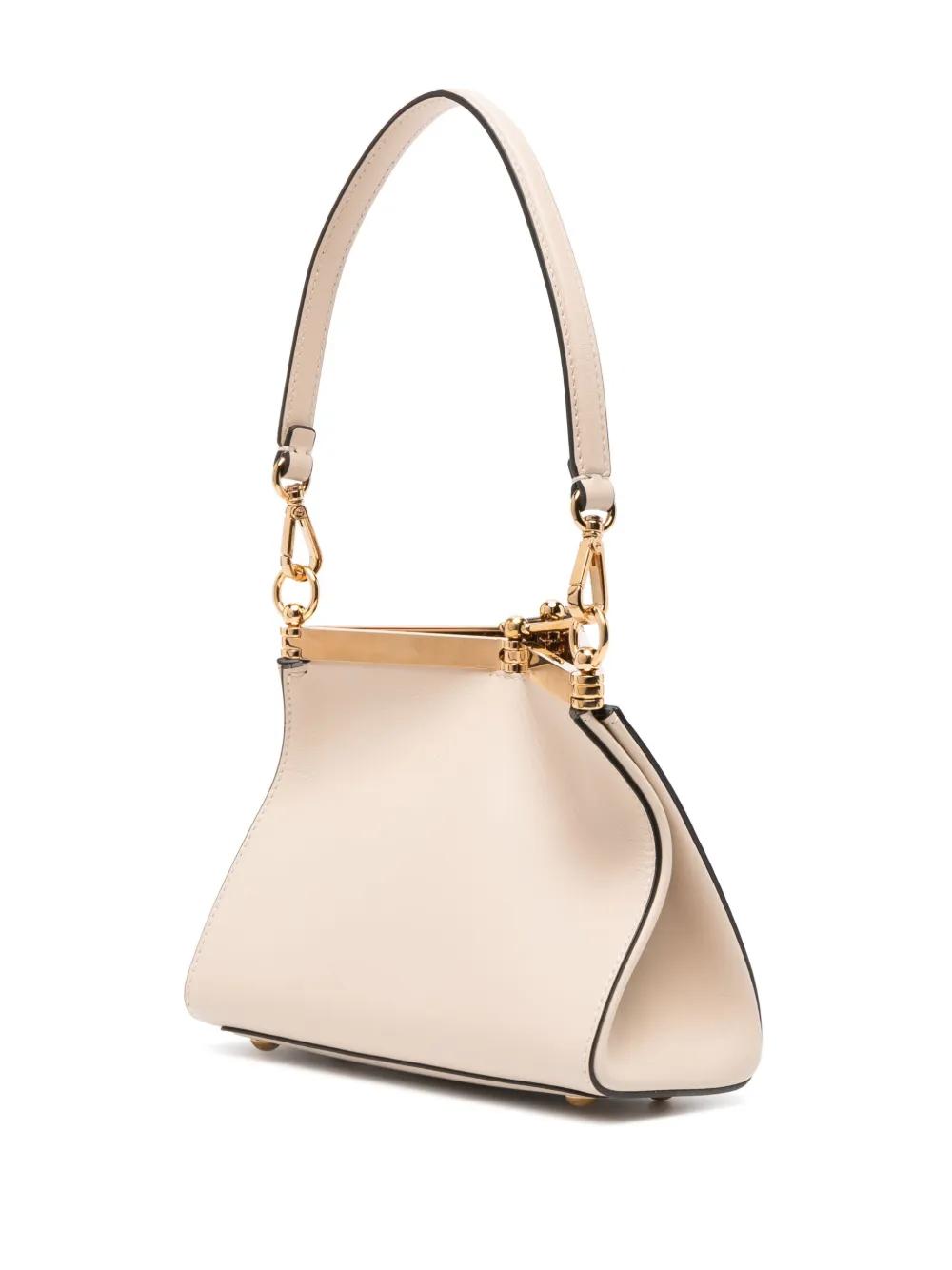 light beige calf leather gold-tone hardware logo pendant clasp fastening adjustable detachable shoulder strap single detachable top handle main compartment metal feet